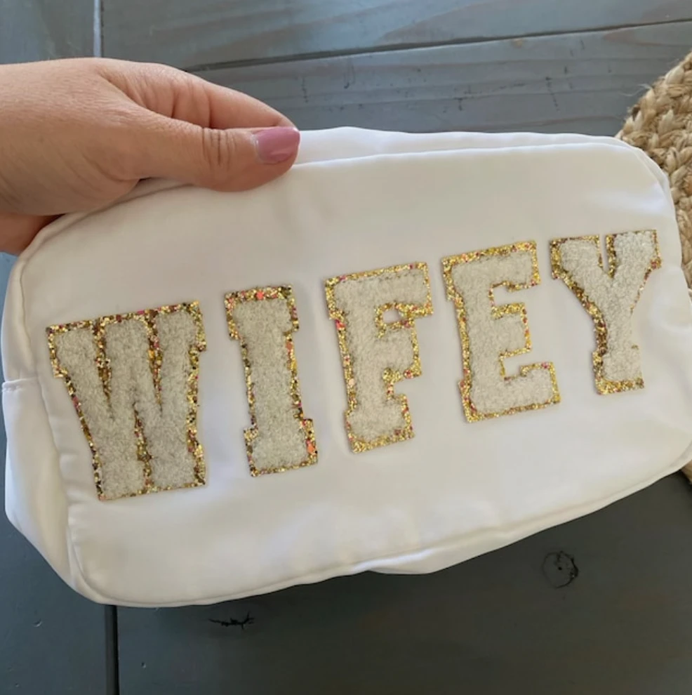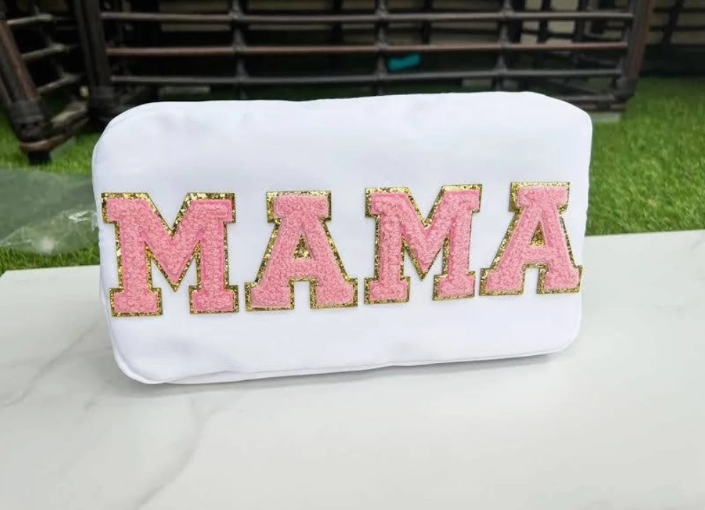 - Elevate your style with the Lovelybeadz Patch Letter Cosmetic Bag, a chic and functional accessory designed for modern lifestyles. Perfect for carrying your cosmetics, toiletries, or small essentials.