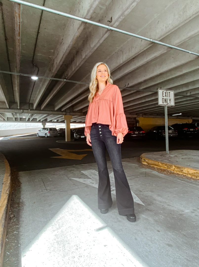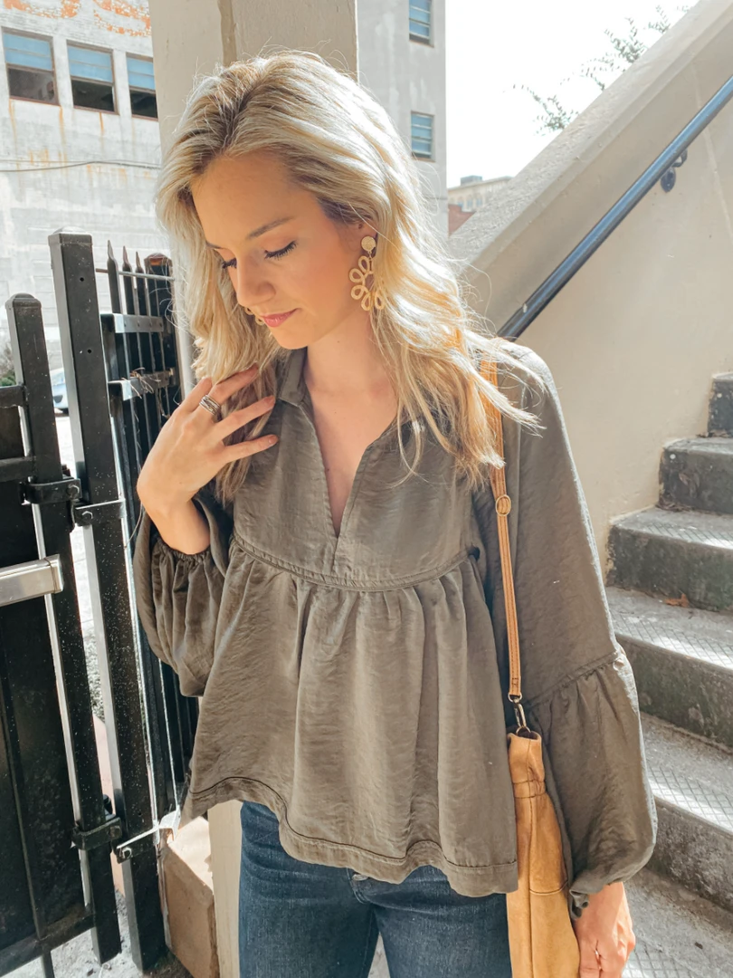 &Merci Carson Silky Babydoll Top – Long Sleeve Blouse for Women