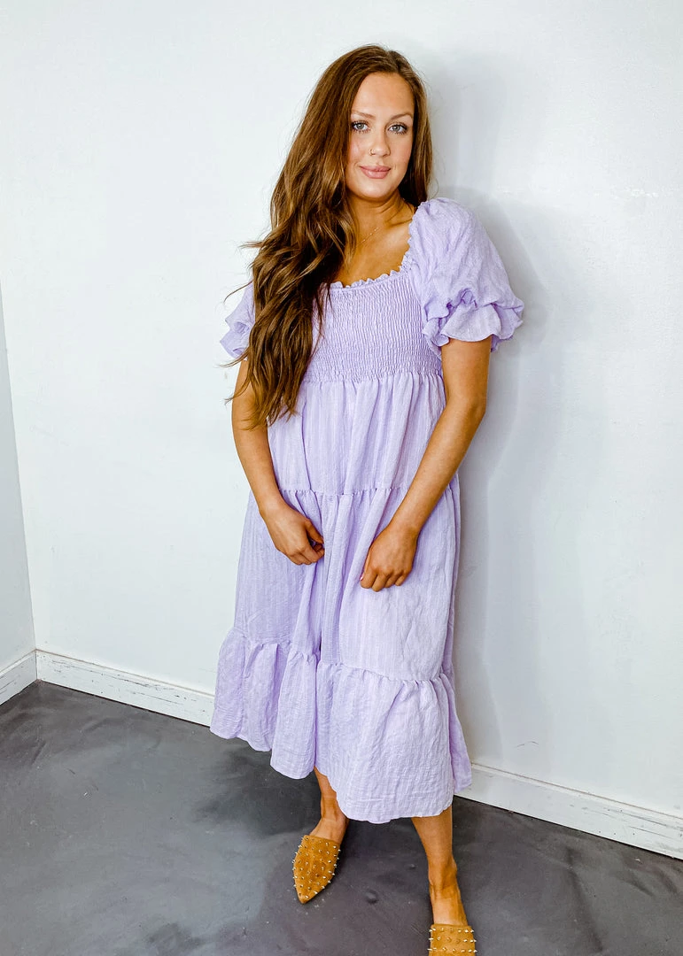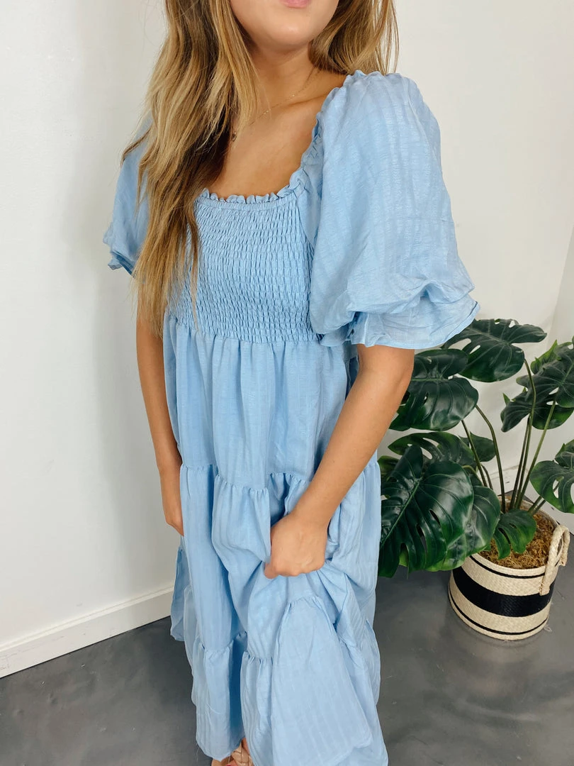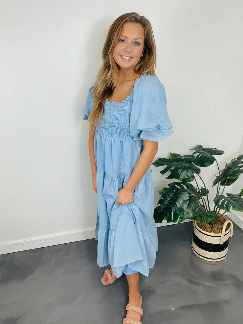 - Available in multiple sizes, the &Merci Robin Smocked Midi Dress is designed to suit various body types. Pair it with sandals or heels for a complete summer look.