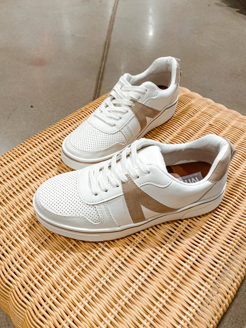 This is the perfect summer sneaker! Pair with a floral dress or flowy skirt to create a casual warm weather look. They are a classic white sneaker with light grey accents.Â