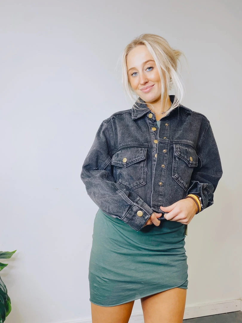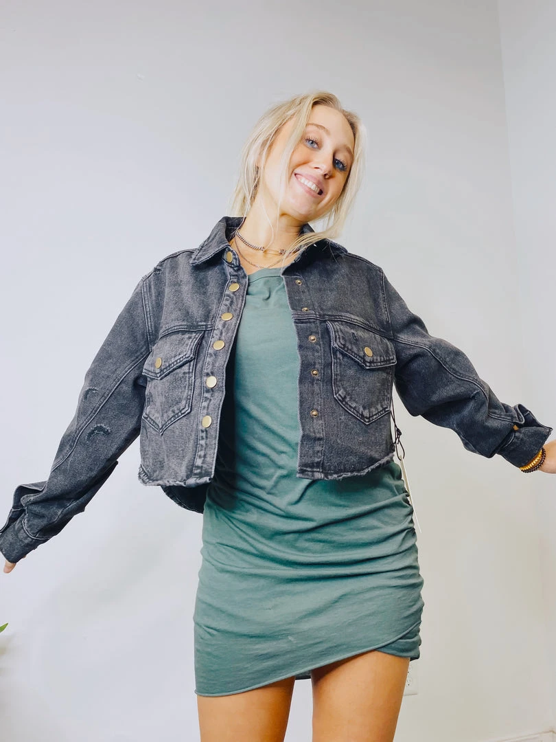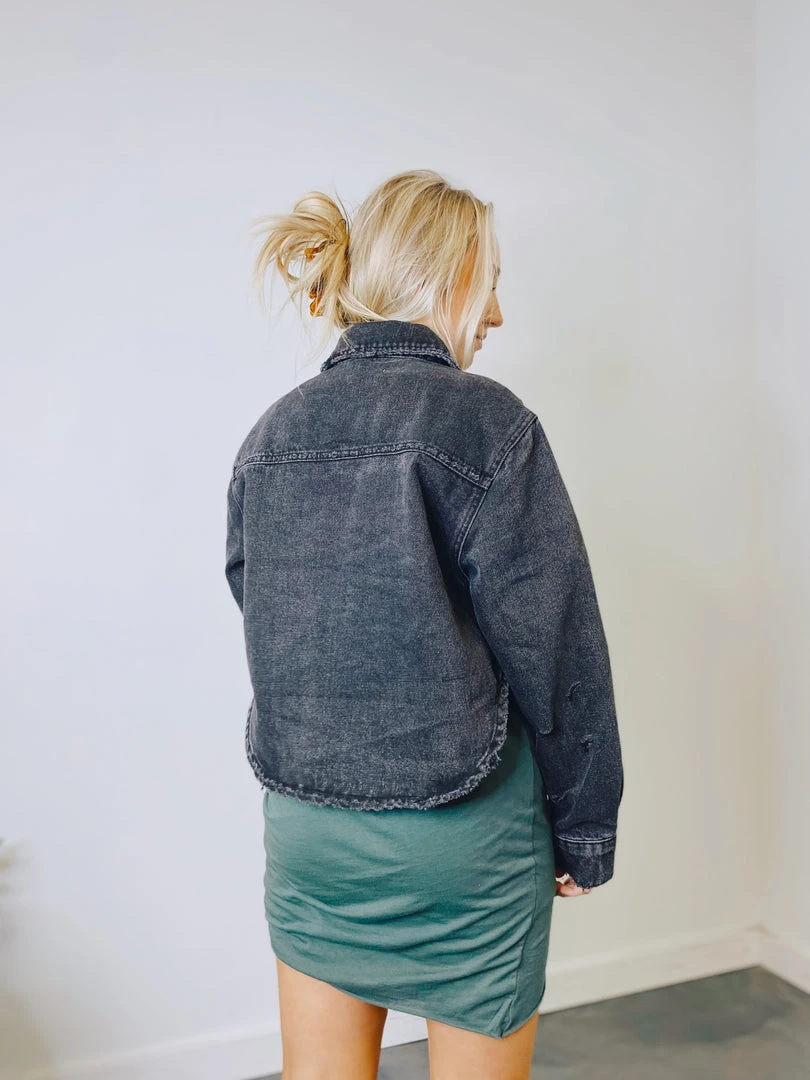 - Featuring a versatile design, the Jasmine Distressed Denim Jacket pairs effortlessly with leggings, joggers, or jeans. It’s an ideal layering piece for transitional weather or cool evenings.