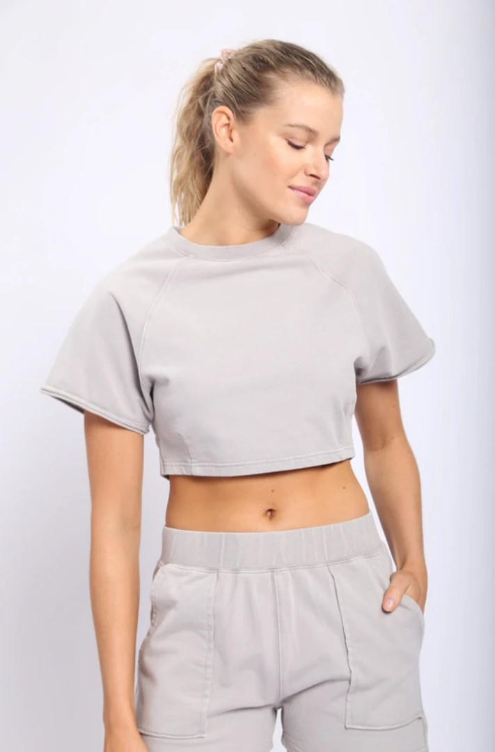 The Kayla Knit Cropped Tee features short sleeves with rolled edges, a trendy cropped silhouette, and a comfortable fit. Pair this tee with the matching Kayla Knit Lounge Shorts to create a trendy, monochromatic lounge ‘fit!