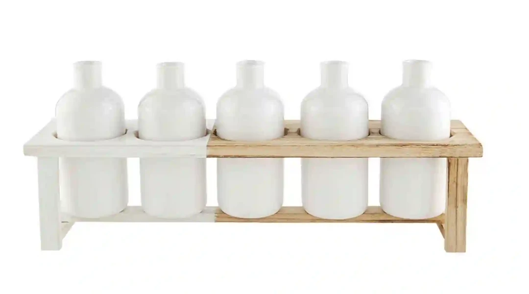 Mud Pie Two-Tone White Vase Stand Set – Elegant Home Decor & Gift Idea
