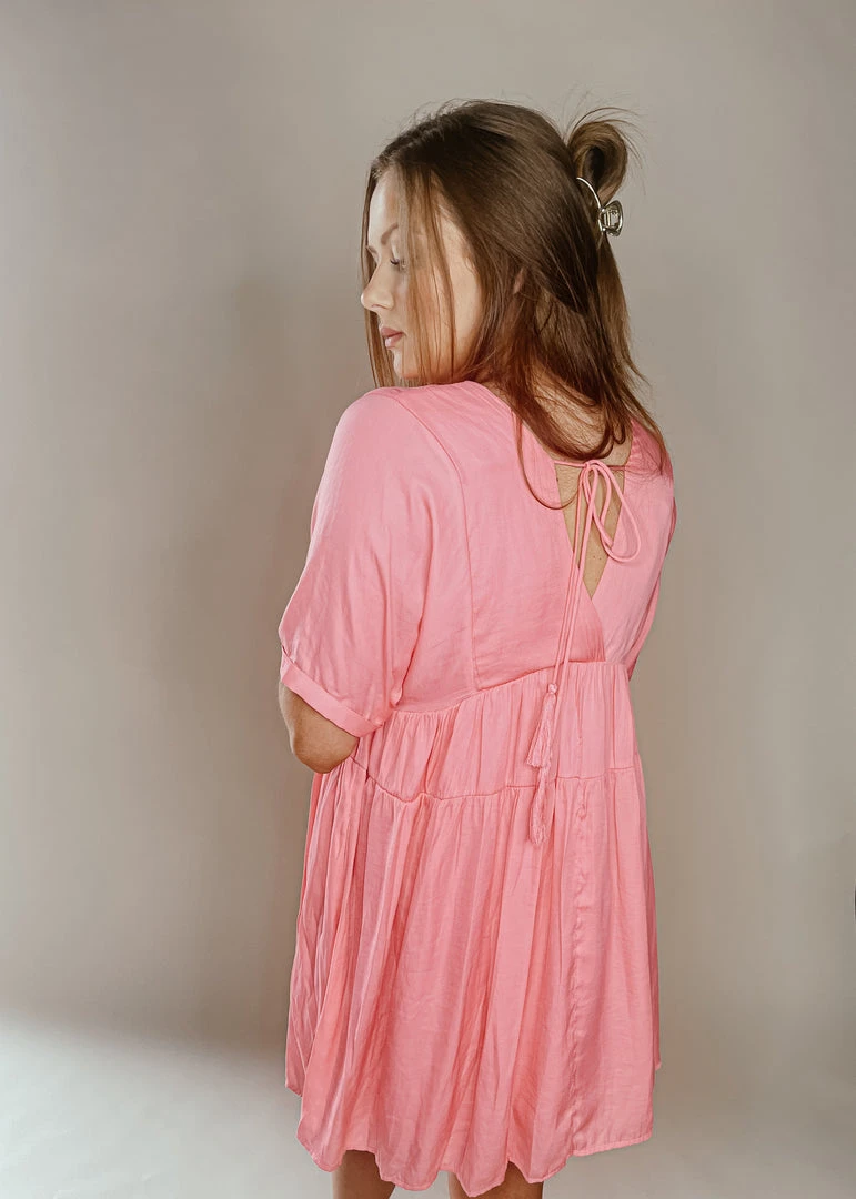 The Vera dress is going to be one of our favorites for the upcoming season! This dress features a v neckline, short sleeves, and an always flattering flowy babydoll silhouette. The Vera dress is fully lined.Â