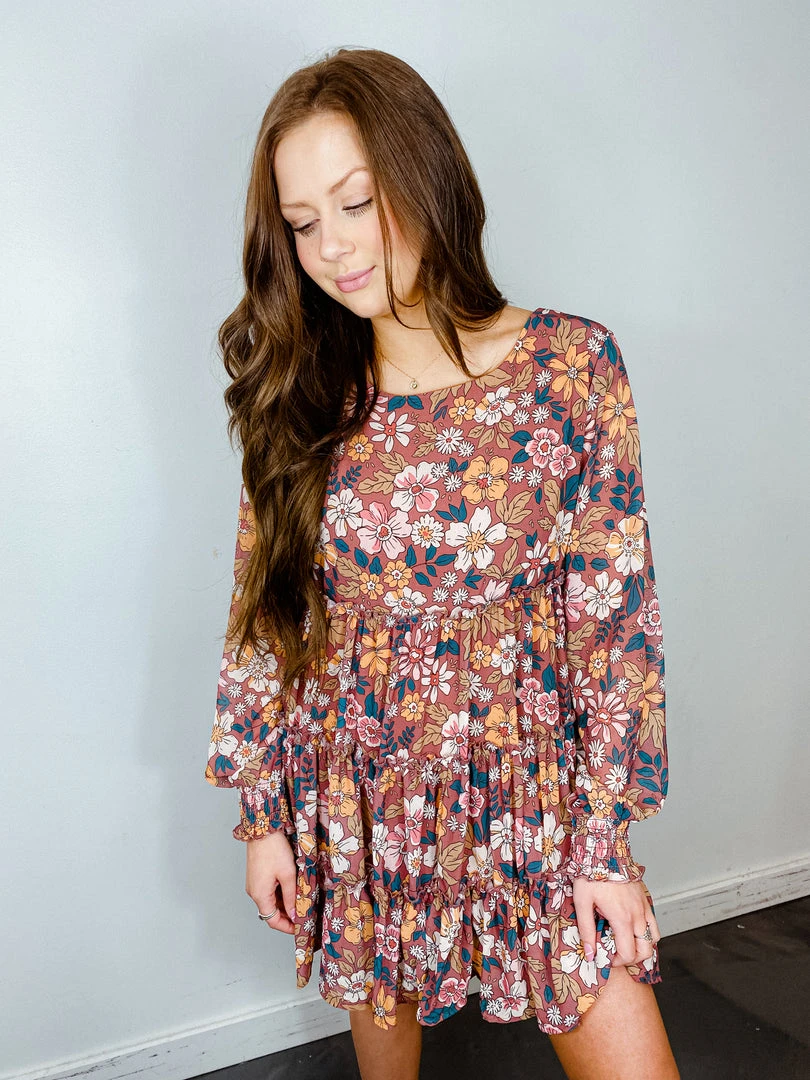 - The Peach Love Groove Floral Ruffle Dress is a stunning addition to your summer wardrobe. Its floral pattern and ruffled details make it a perfect choice for casual outings, beach days, or even a romantic dinner.