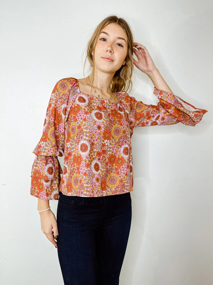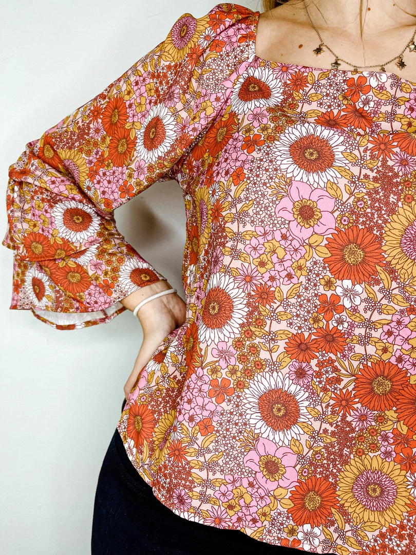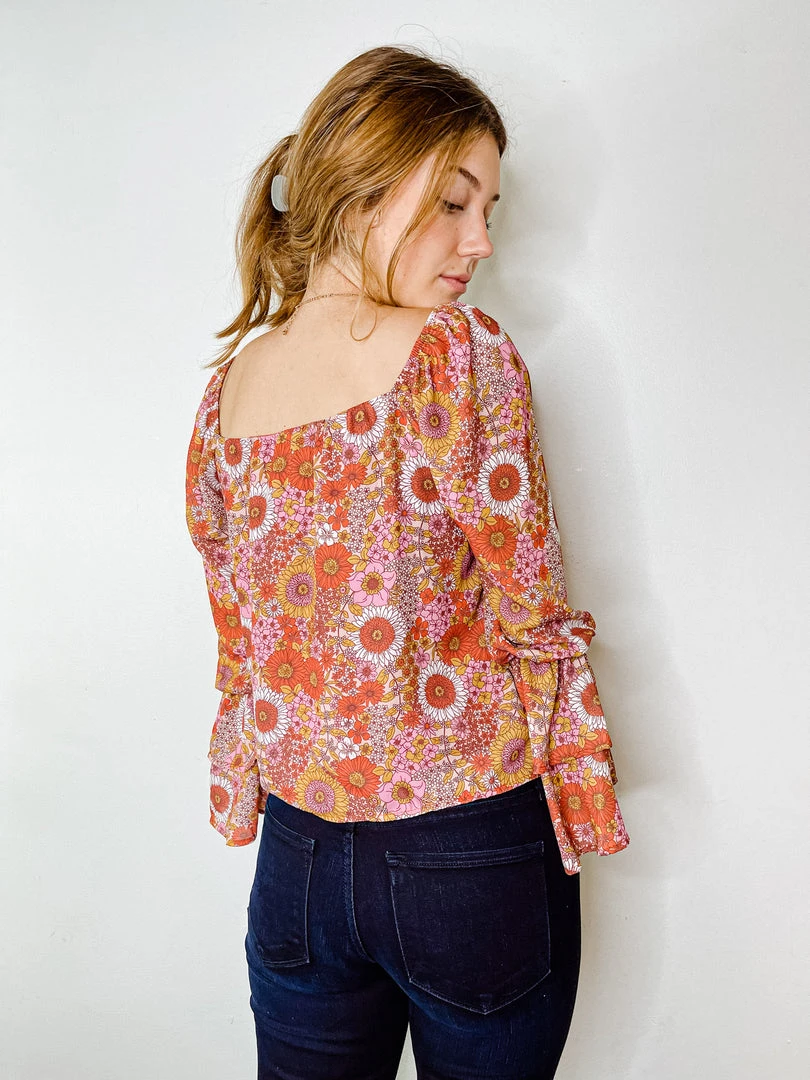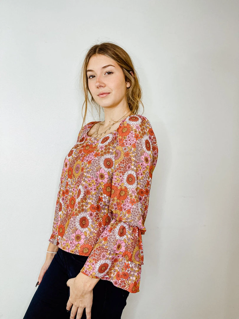 - Elevate your style with the Peach Love Retro Vibes Floral Long Sleeve Top. This vintage-inspired blouse features a beautiful floral print and a relaxed fit, making it perfect for any casual or semi-formal occasion.