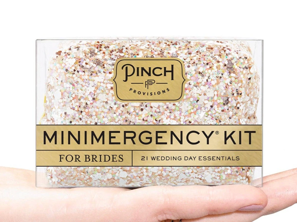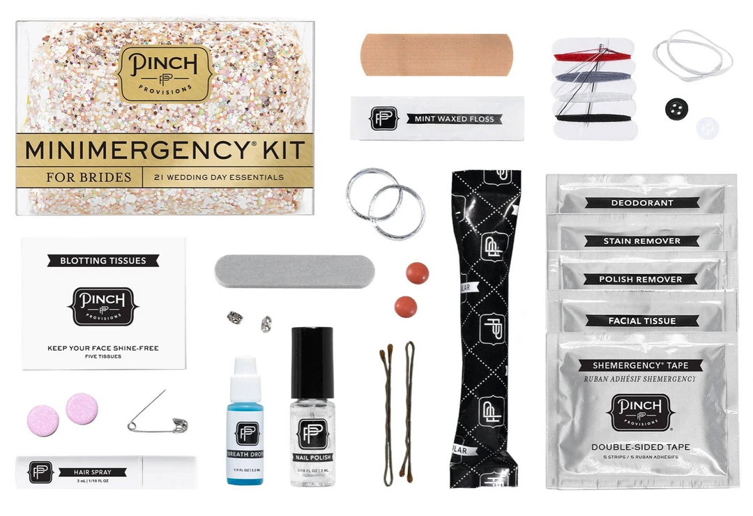 - The Pinch Provisions Bride Minimergency Kit is the ultimate wedding day survival kit, designed to handle any last-minute emergencies with ease. Compact and stylish, it fits perfectly in your clutch or bridal bag.