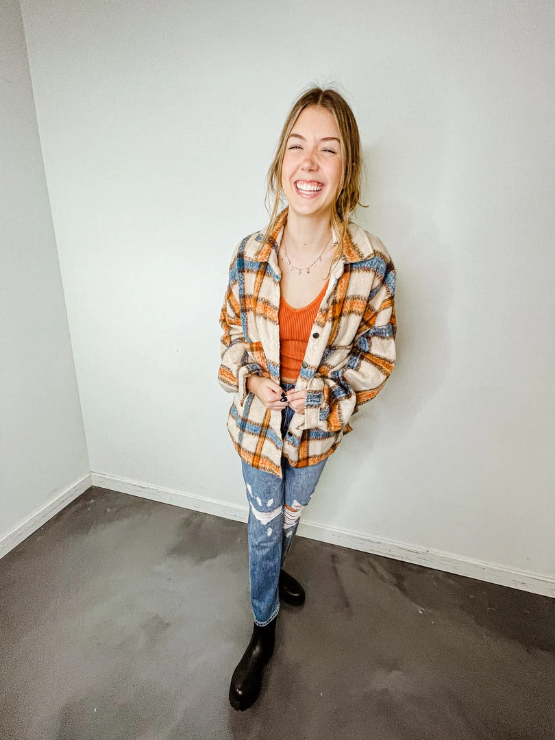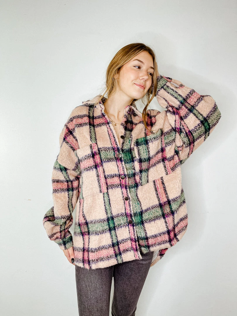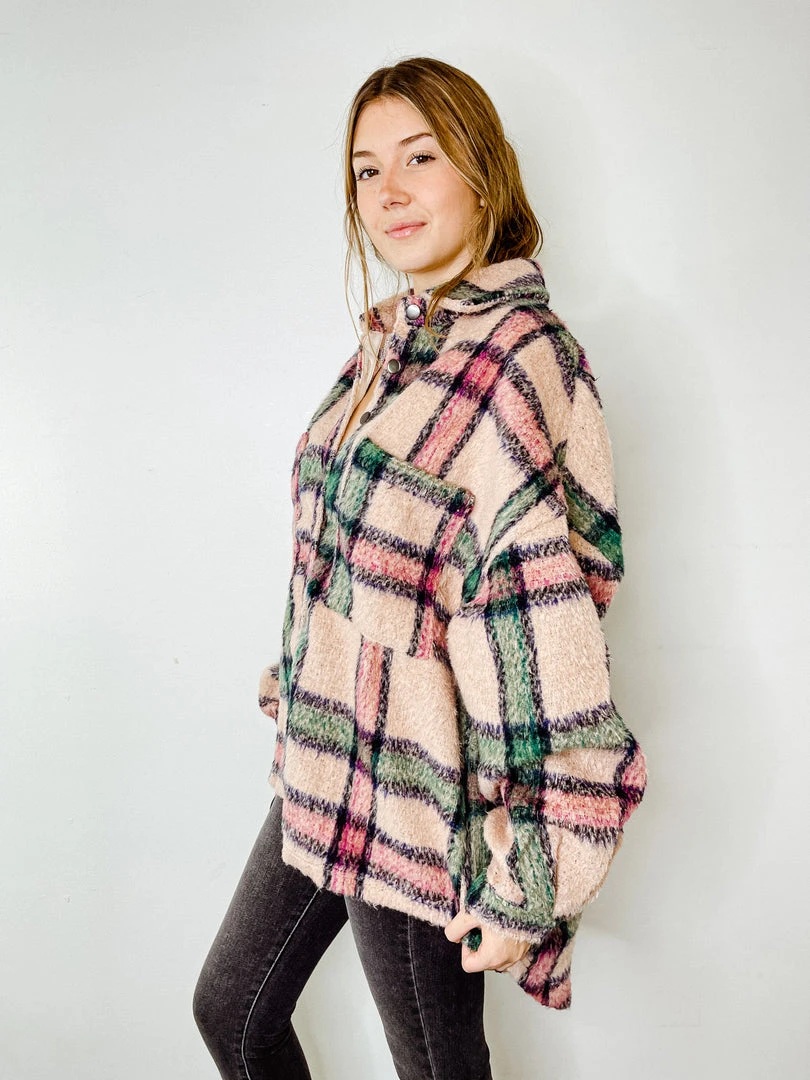 - The POL Layer Up Plaid Jacket is a must-have outerwear piece, blending the style of a shirt with the warmth of a jacket. Perfect for layering during chilly days or cool evenings.