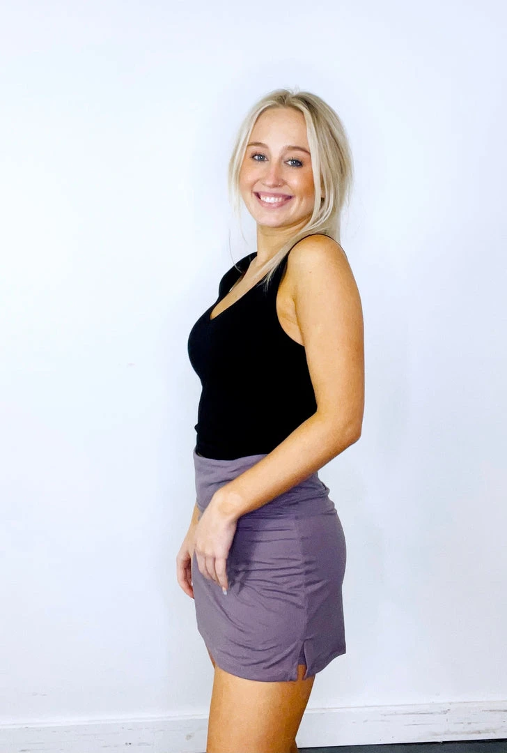 - Crafted with high-quality, breathable fabric, this skort ensures maximum comfort and flexibility during any activity. The built-in shorts provide coverage and support, while the skirt adds a touch of elegance.