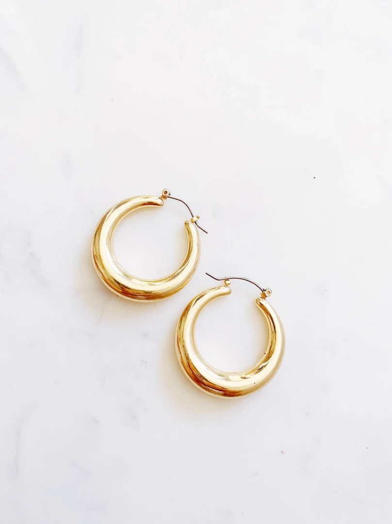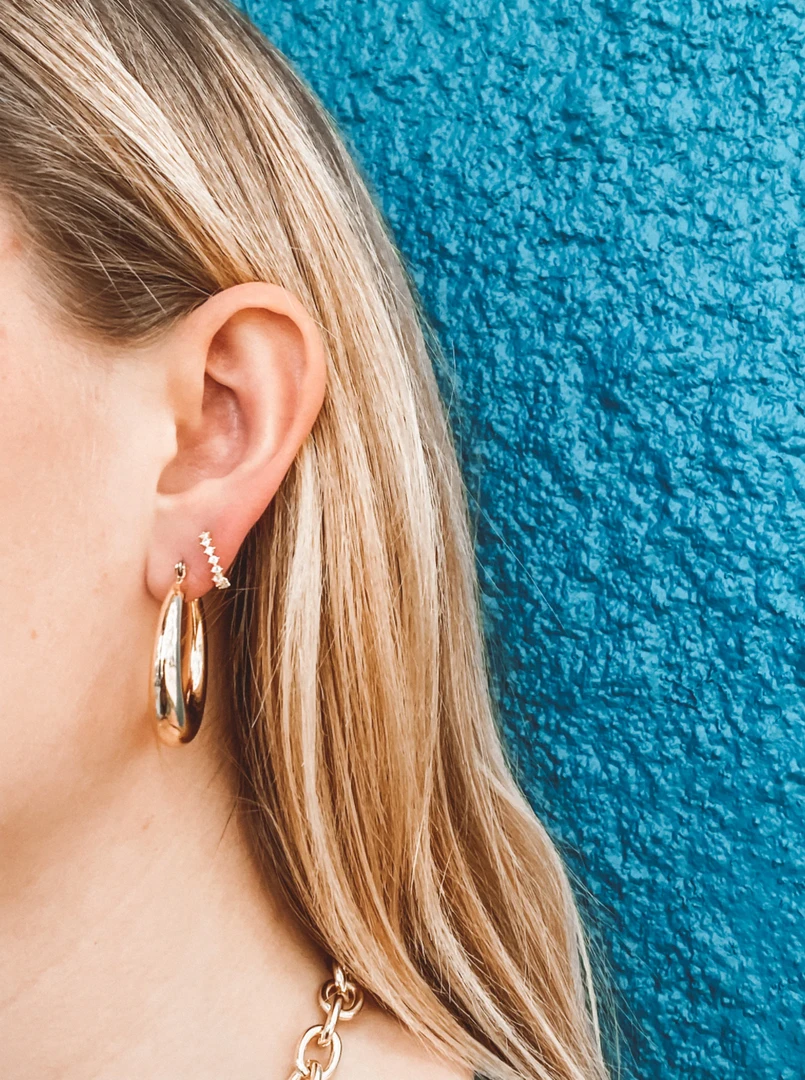The Raw & Rebellious ‘Natasha’ hoops are the perfect everyday hoops earrings! They are a classic medium size and are super lightweight. Wear these hoops alone or easily them pair with dainty second hole studs to complete a trendy look!