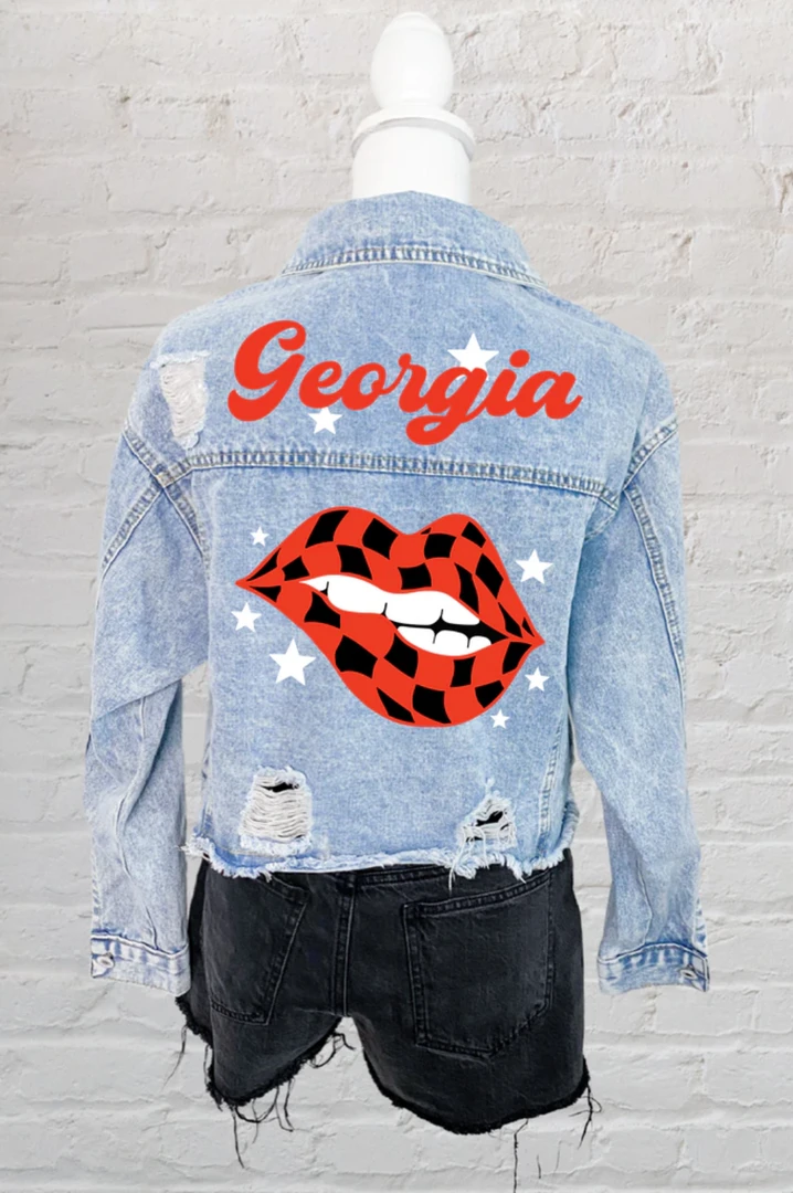 Rivalry Runway Gameday Checkered Lips Denim Jacket – Game Day Collection