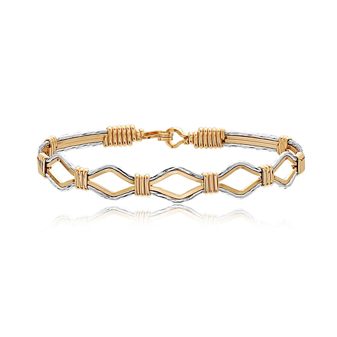 Ronaldo Designer Jewelry features handmade in the USA bracelets that are artfully crafted from Argentium sterling silver and 14k gold artist wire. These simple and dainty bracelets look even better when you start a Ronaldo stack, and add other bracelets. Most women wear a size 7. Use a measuring tape and measure you wrist, then add 1/2 inch to your measurement to find your Ronaldo size.