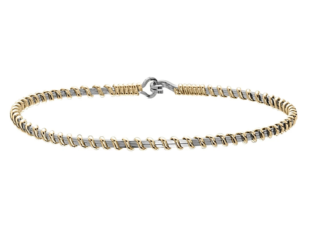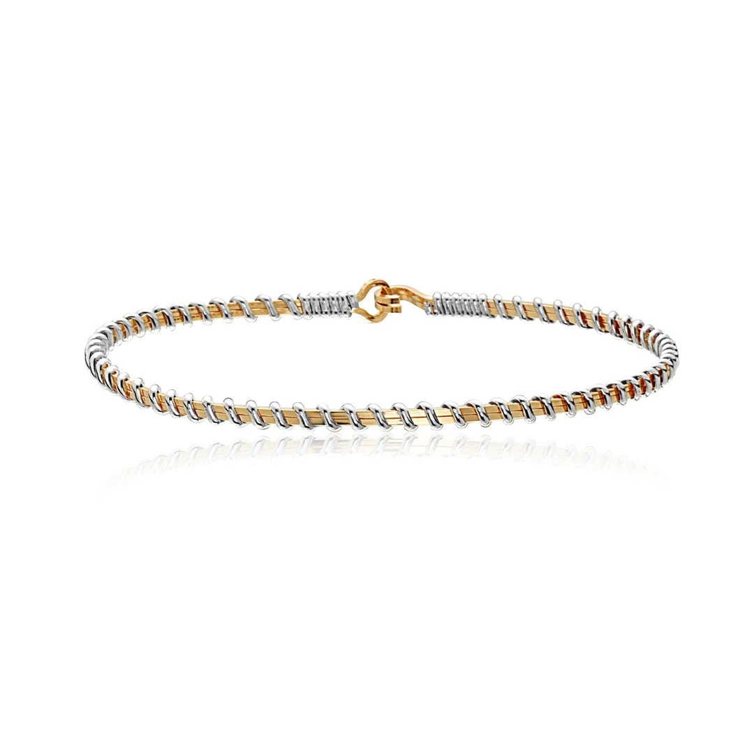 Ronaldo Designer Jewelry features handmade in the USA bracelets that are artfully crafted from Argentium sterling silver and 14k gold artist wire. These simple and dainty bracelets look even better when you start a Ronaldo stack, and add other bracelets. Most women wear a size 7. Use a measuring tape and measure you wrist, then add 1/2 inch to your measurement to find your Ronaldo size.