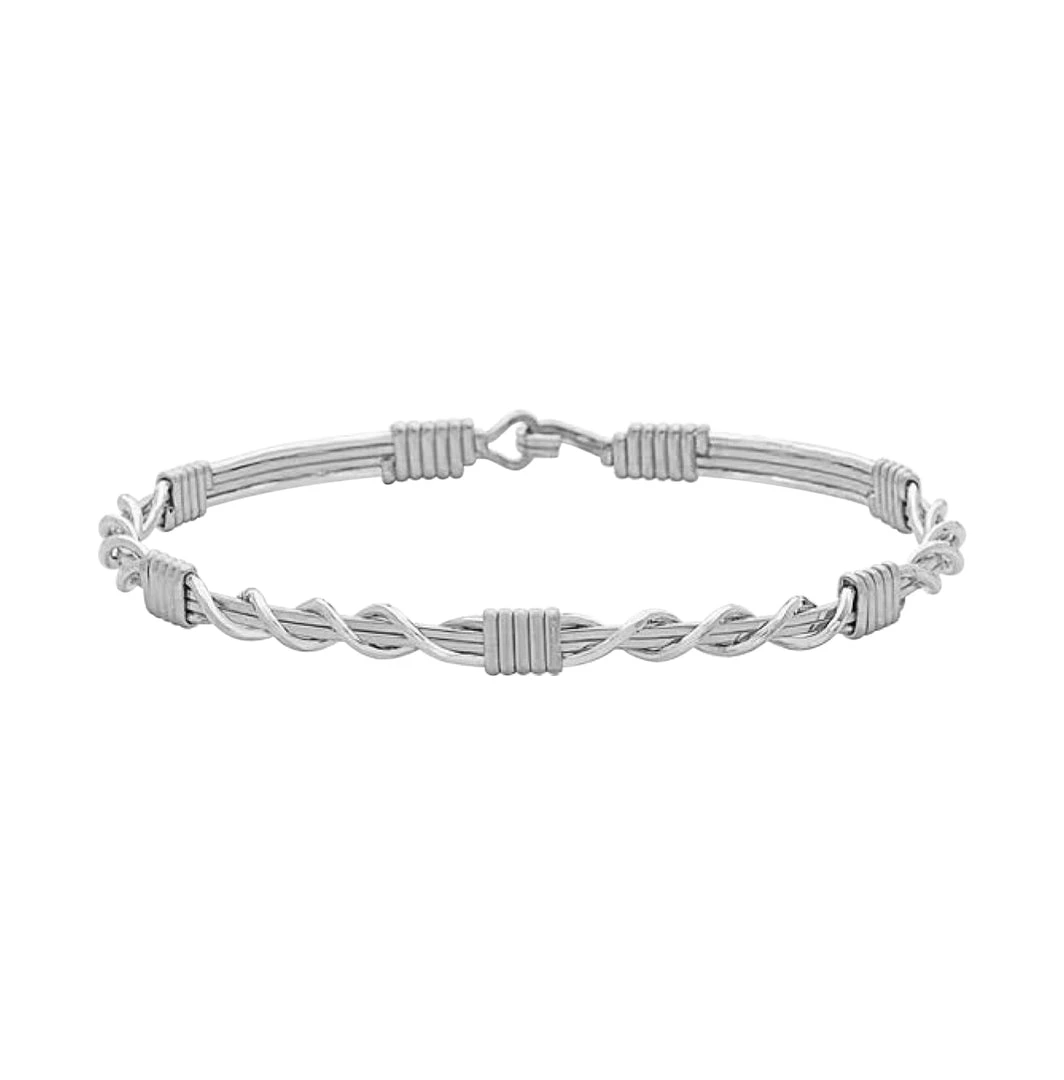 Ronaldo Designer Jewelry features handmade in the USA bracelets that are artfully crafted from Argentium sterling silver and 14k gold artist wire. These simple and dainty bracelets look even better when you start a Ronaldo stack, and add other bracelets. Most women wear a size 7. Use a measuring tape and measure you wrist, then add 1/2 inch to your measurement to find your Ronaldo size.
