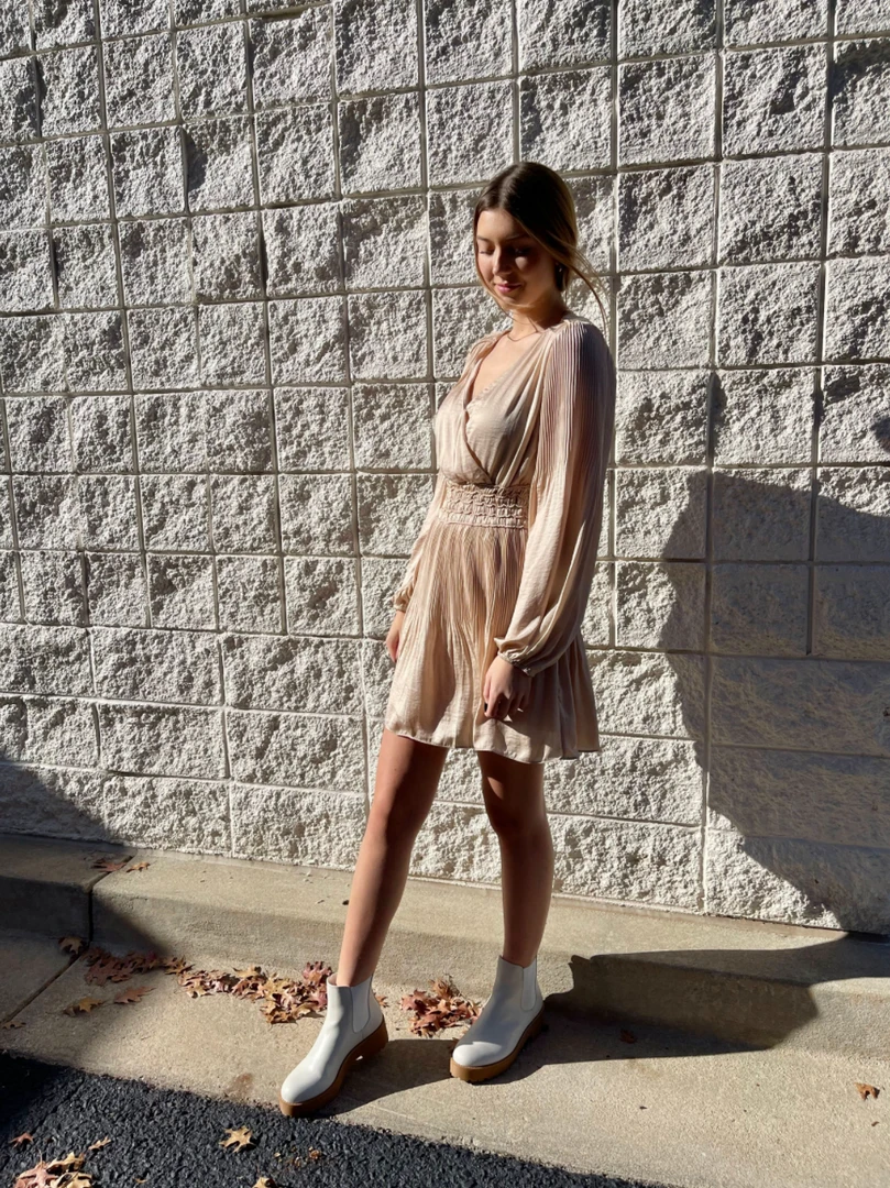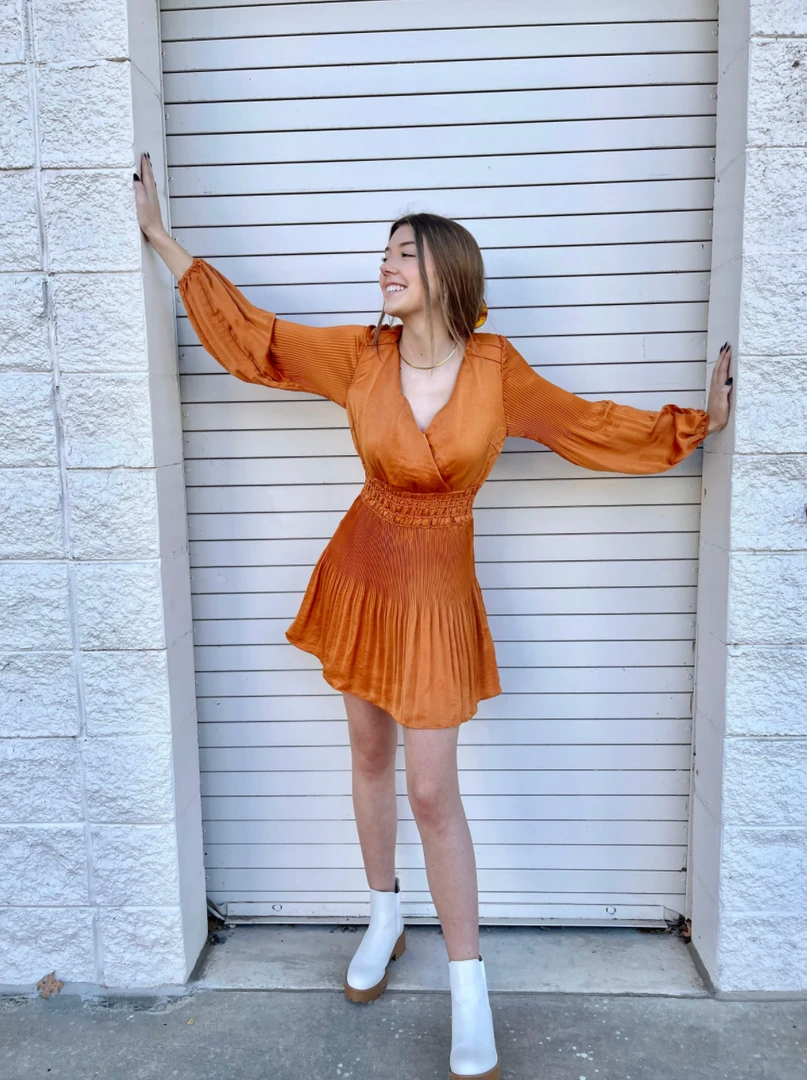 - Whether you’re attending a wedding, party, or formal event, the She + Sky Hailey Smocked Satin Dress is your go-to choice for timeless elegance. Order now and make a statement!