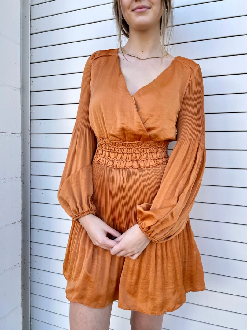 - Crafted from high-quality satin, this dress is soft to the touch and drapes beautifully. The smocked detailing adds a touch of sophistication, making it a versatile piece for any event.