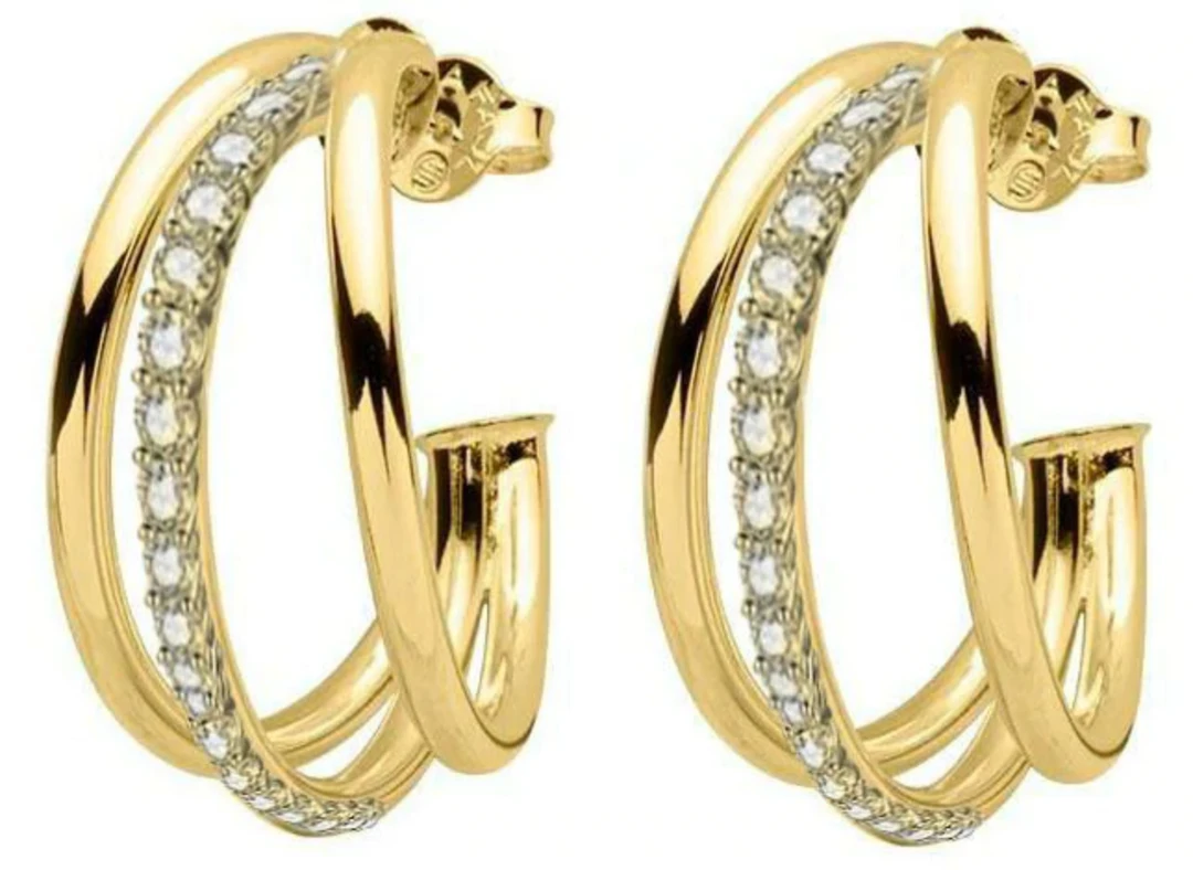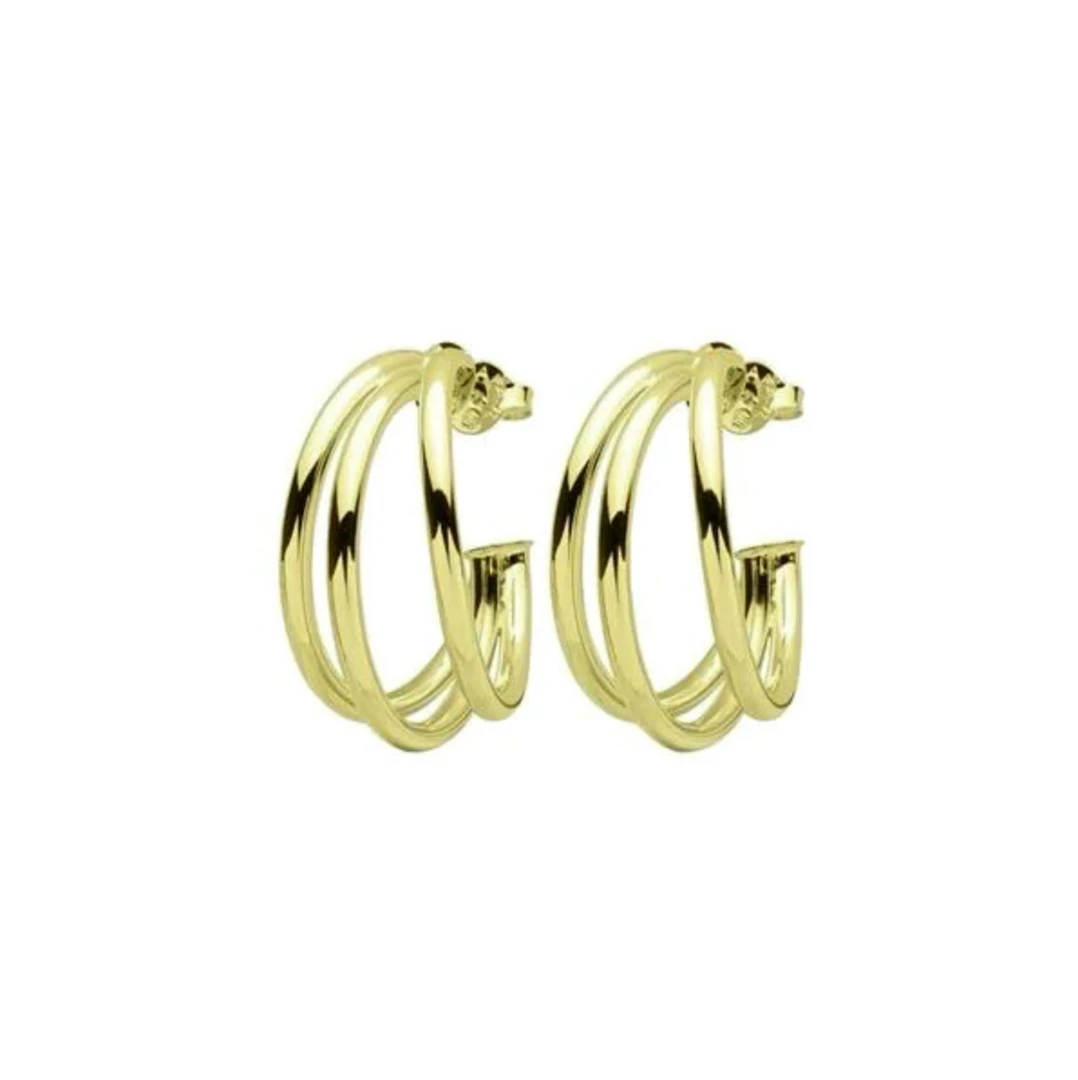 - Discover the Sheila Fajl Jewelry Claire Triple Hoop Earrings, a stunning addition to your jewelry collection. These elegant earrings feature a triple hoop design, crafted with precision and finished in a luxurious gold-plated coating.
