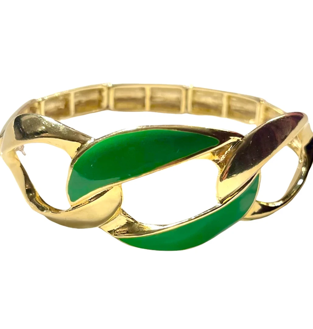 The Sheila Fajl Jaga Bracelet is an elastic bracelet that features a detailed, colorful resin link that will easily add a pop of color to any outfit. Wear the Jaga bracelet alone or add it to your bracelet stack!