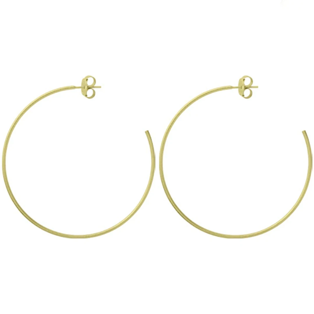 - Elevate your style with the Sheila Fajl Jillian Hoop Earrings. These elegant gold-plated hoops are designed to add a touch of sophistication to any outfit.