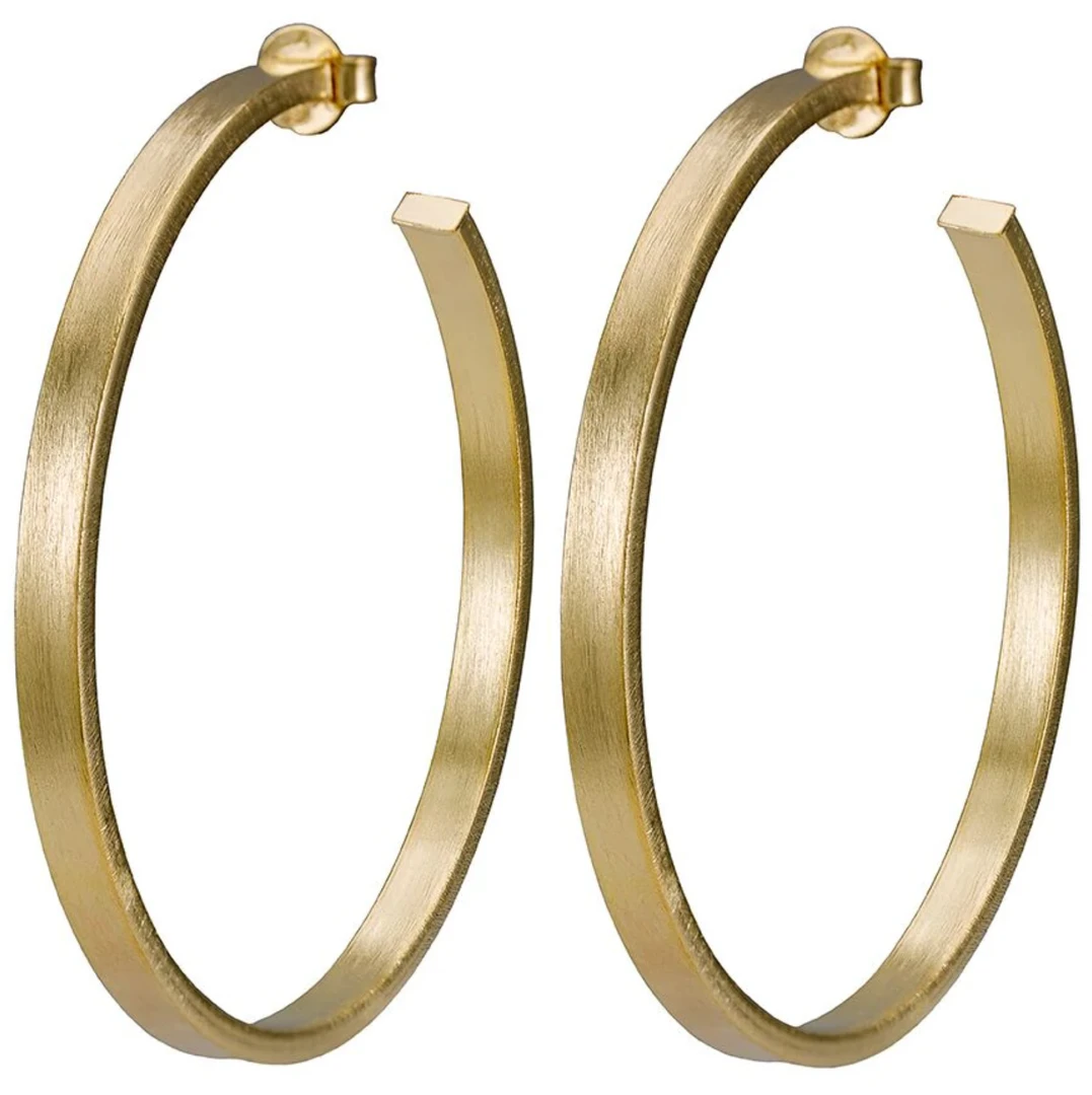 - Elevate your style with the Sheila Fajl Lunaria Hoop Earrings. These elegant gold-tone earrings feature a unique design that adds a touch of sophistication to any outfit.