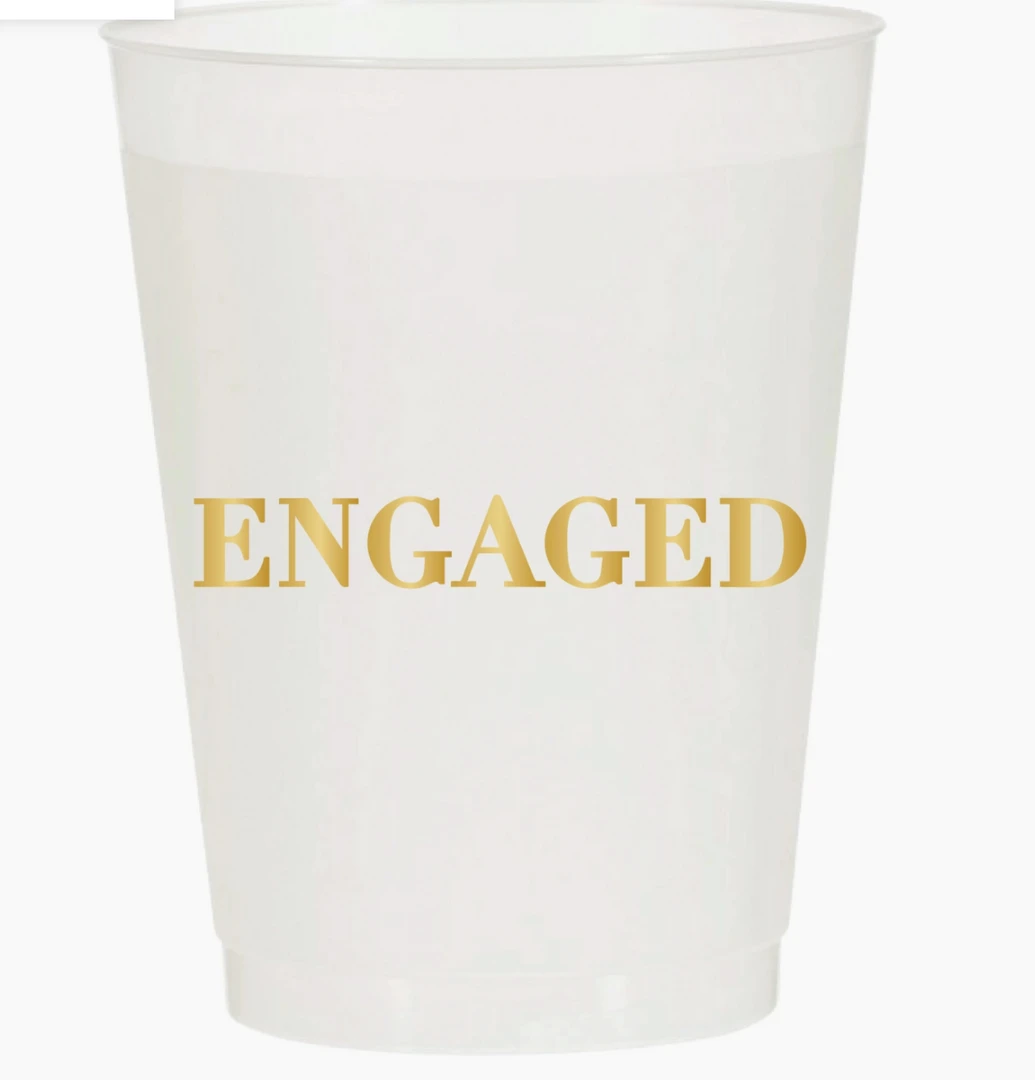 Sip Hip Hooray! The Engaged Reusable Cup Set is a perfect party favor for the newly engaged couple. Whether you are party planning for yourself or the couple, make sure to grab the Engaged Reusable Cup Set!Â