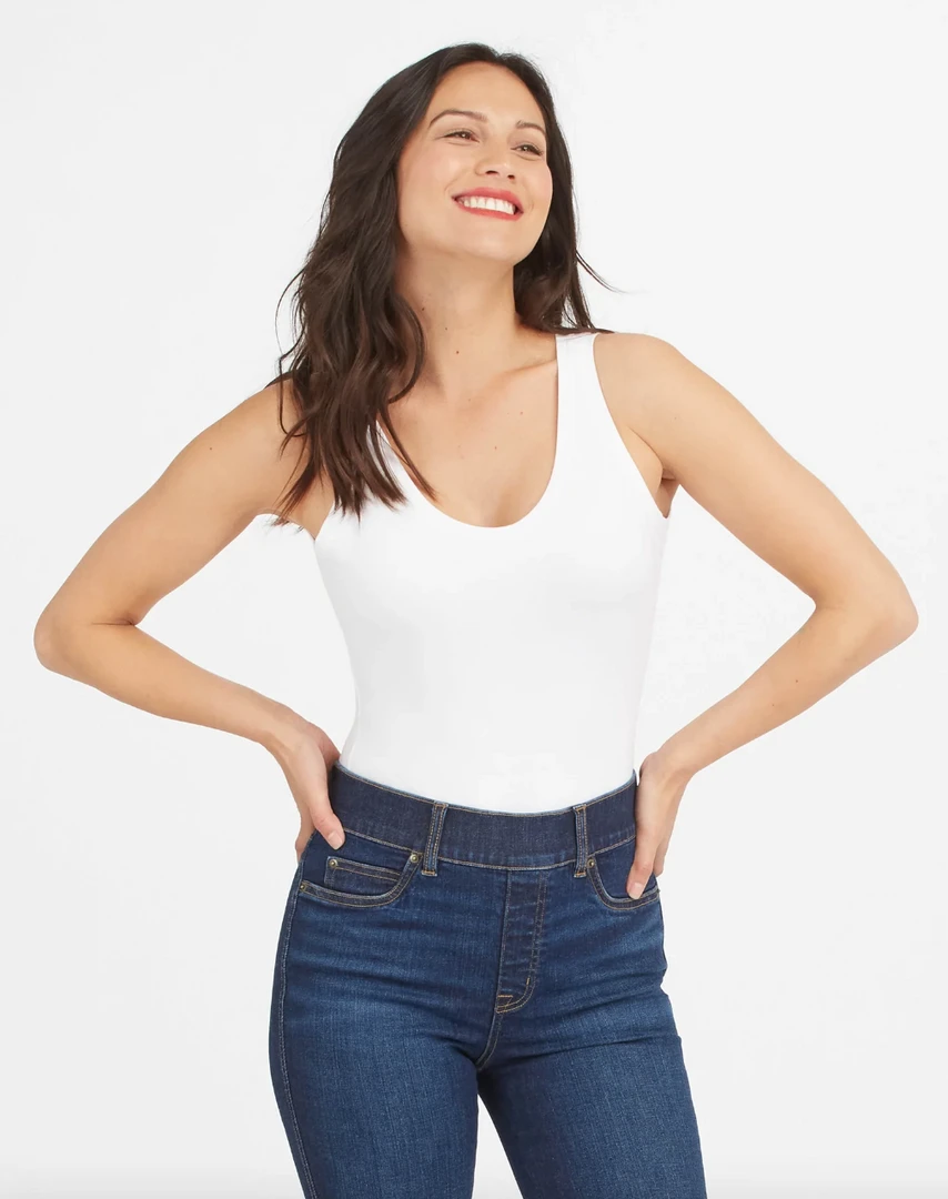 The new basic bodysuit you will be pairing with every outfit possible. Meet the Suit Yourself Bodysuit, coming from one of our favorite Vendors, Spanx! The Suit Yourself is a sleek and modern fit bodysuit that is perfect for layering! Available in white and classic black!Â