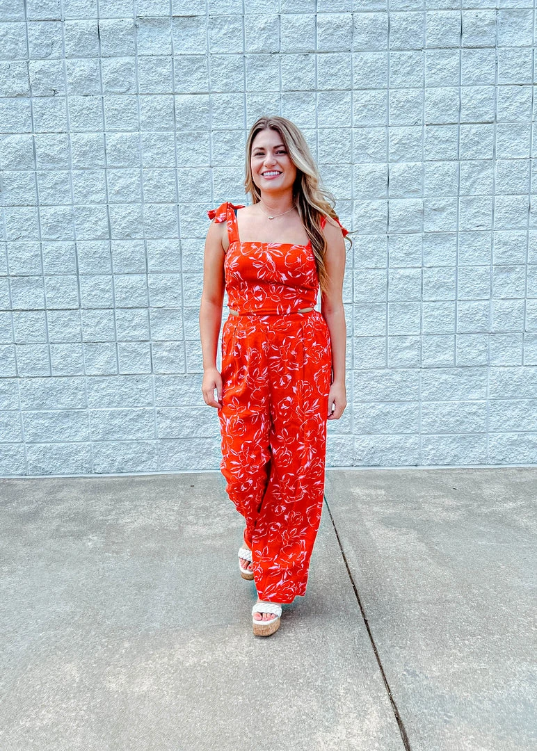 Meet the Harley Cut Out Jumpsuit! We love the tie strap detailing the Harley features, as well as cut out detailing on the sides, with a zipper closure, and an elastic waistband. This jumpsuit can take you from work, to vacay mode very easily and is definitely a statement piece for your summer wardrobe.Â
