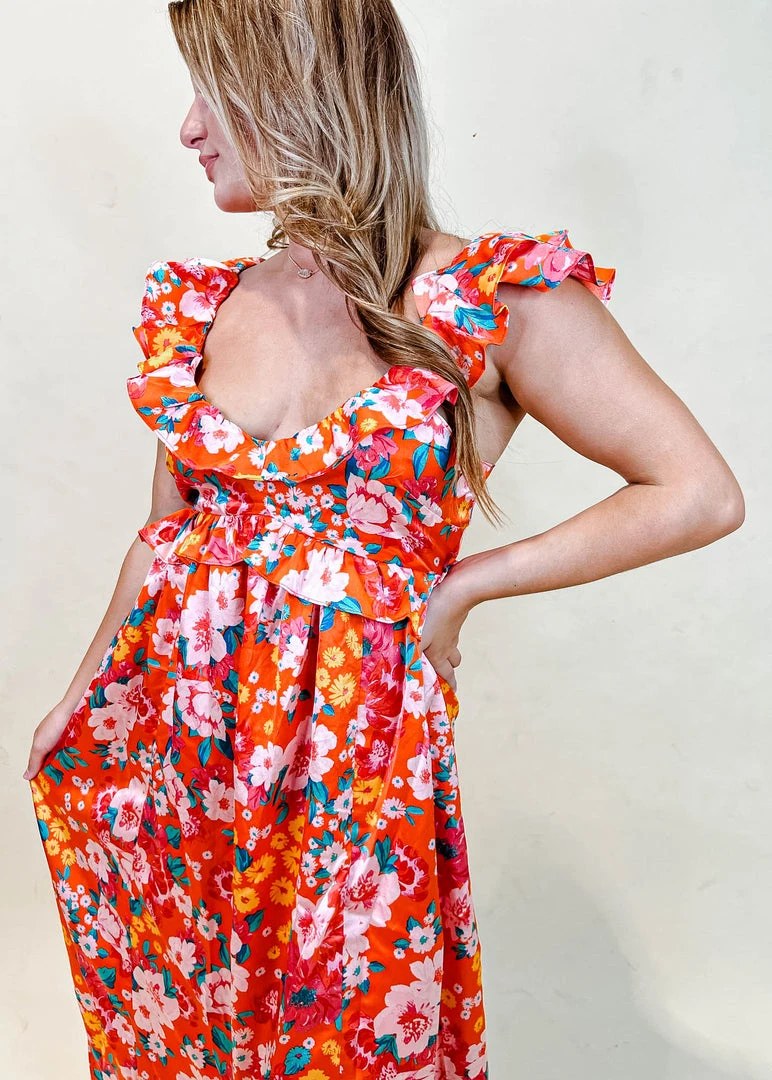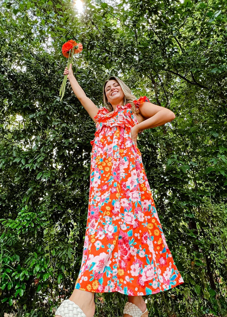 Our Lizbeth Midi screams all things summer and we are loving it. It features the cutest ruffle layers and elastic waist. The orange color feature is so on trendy for this season and we love how flattering the neckline on the Lizbeth dress is.Â