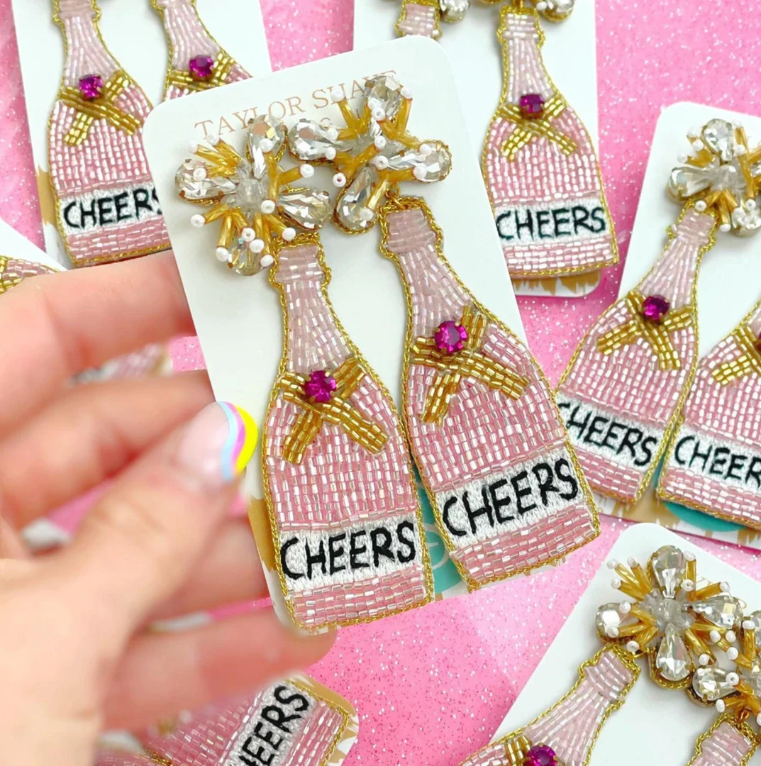 - Elevate your style with the Taylor Shaye Jewelry Cheers Bottle Earrings. These unique statement earrings feature a chic bottle design, perfect for adding a touch of fun and sophistication to any outfit.