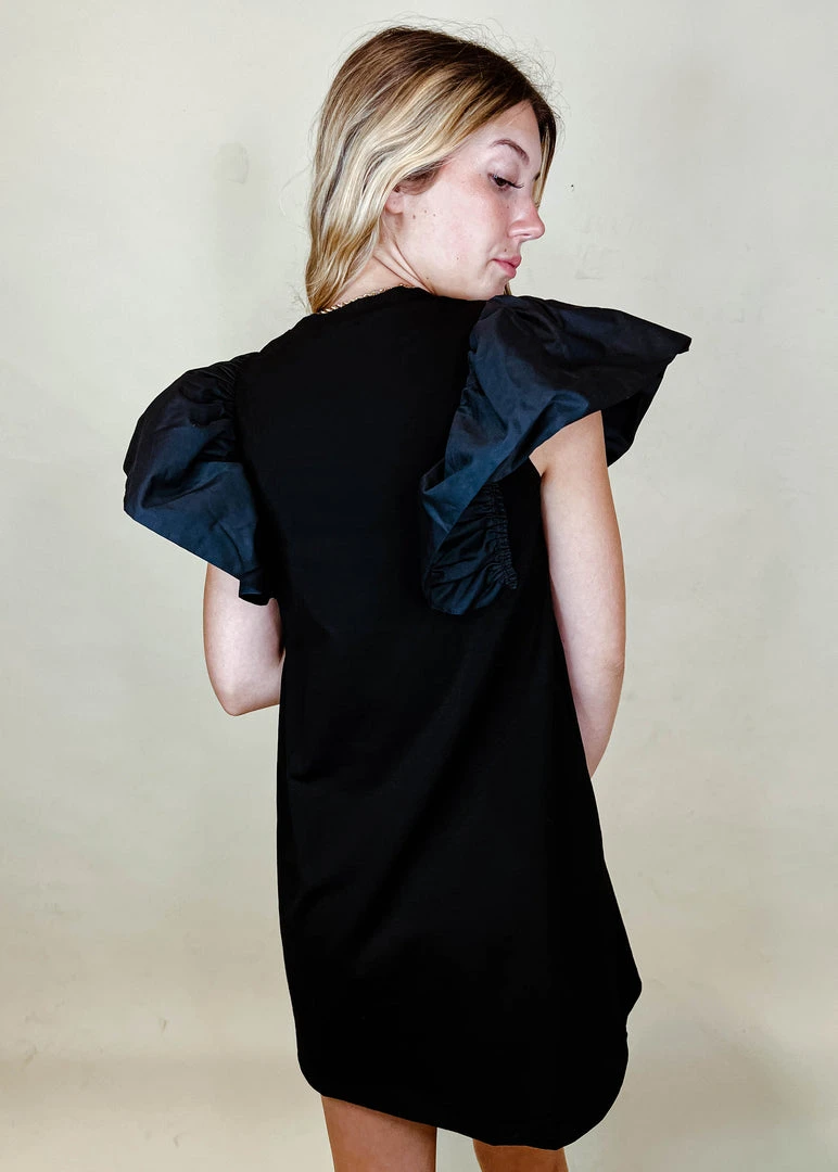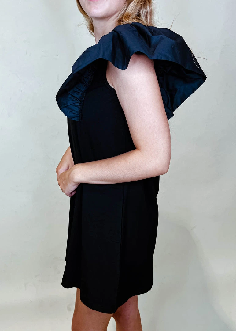 Our Sweet Annie Ruffle Dress is the LBD you need! Classic, but for sure makes a statement. Not to mention, it is a knit fabric so perfect for those hot summer days. The Sweet Annie Dress pairs perfect with your favorite pair of sneakers or wedges to dress up or down!Â
