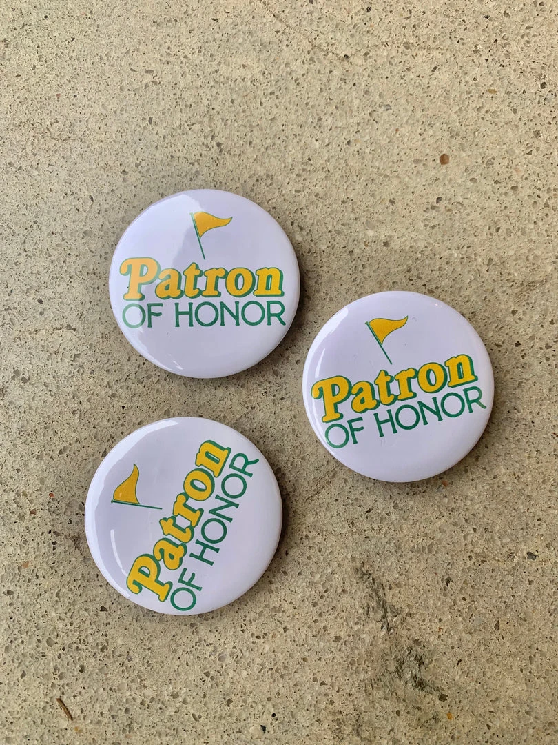 Looking for the perfect accessory to tee-off your outfit? The Patron of Honor Button is for you! It comes with a secure pin that allows you to place it anywhere on your outfit, and a flat back for the perfect lay.Â