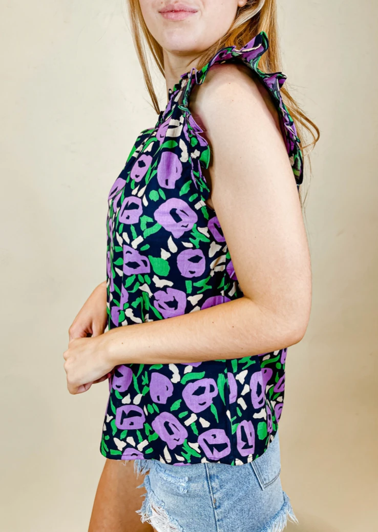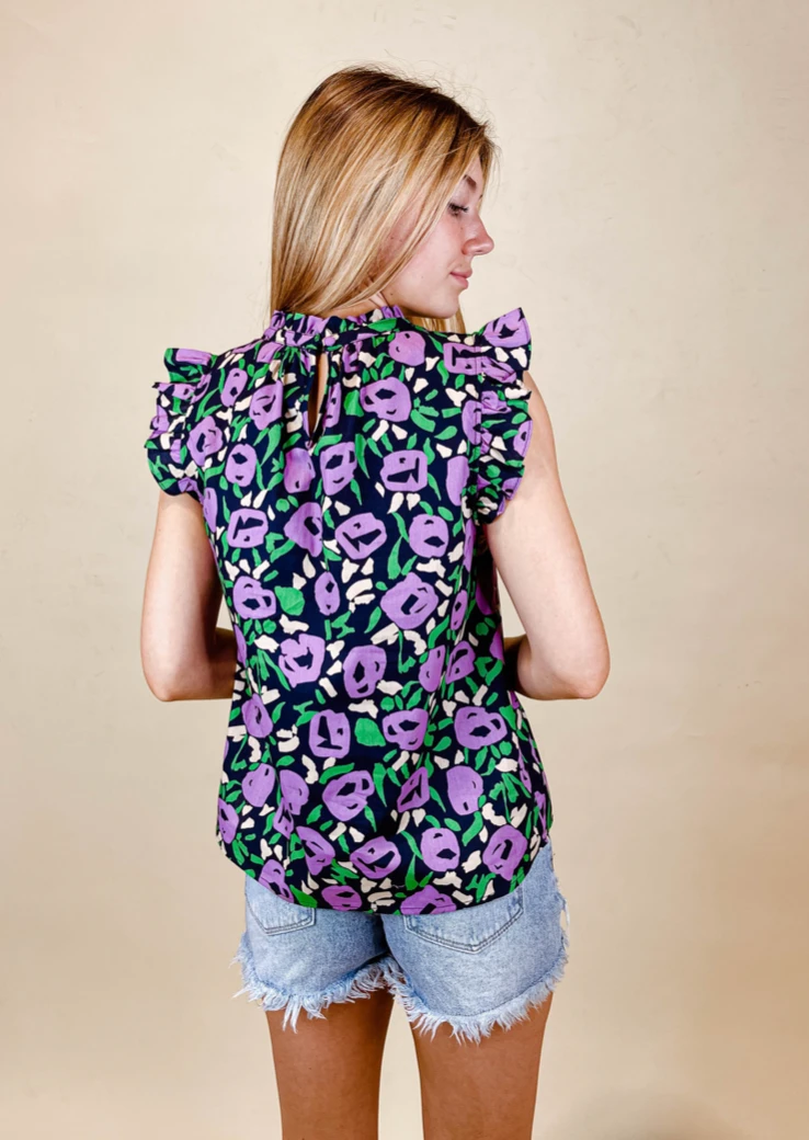 The Rebecca Floral Ruffle Sleeve Top features an all over abstract floral print, ruffle accents at the neckline and sleeves, and a relaxed fit. Pair the Rebecca top with your favorite shorts, skirt, or white jeans to create a look that you can recreate all summer long!