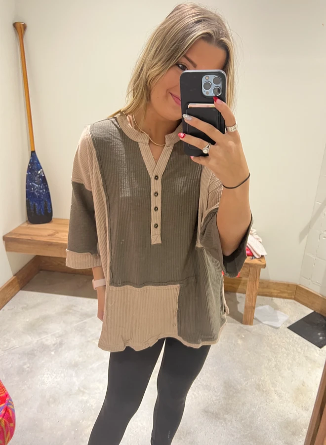 Time After Time Patch It Up Raw Hem Top – Stylish Women’s Casual Tops