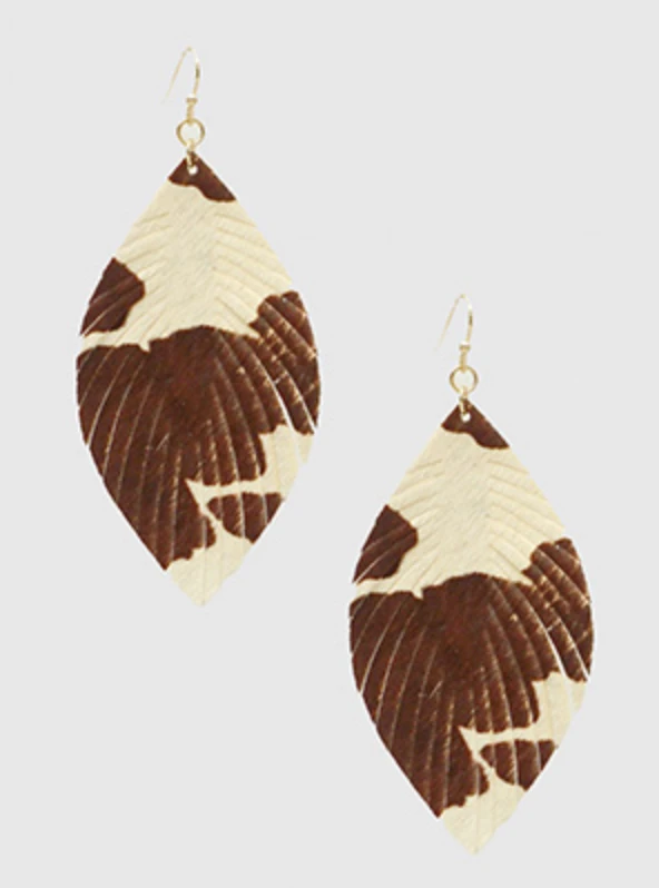TRENDY Cow Print Feather Earrings – Stylish Wholesale Jewelry for Women