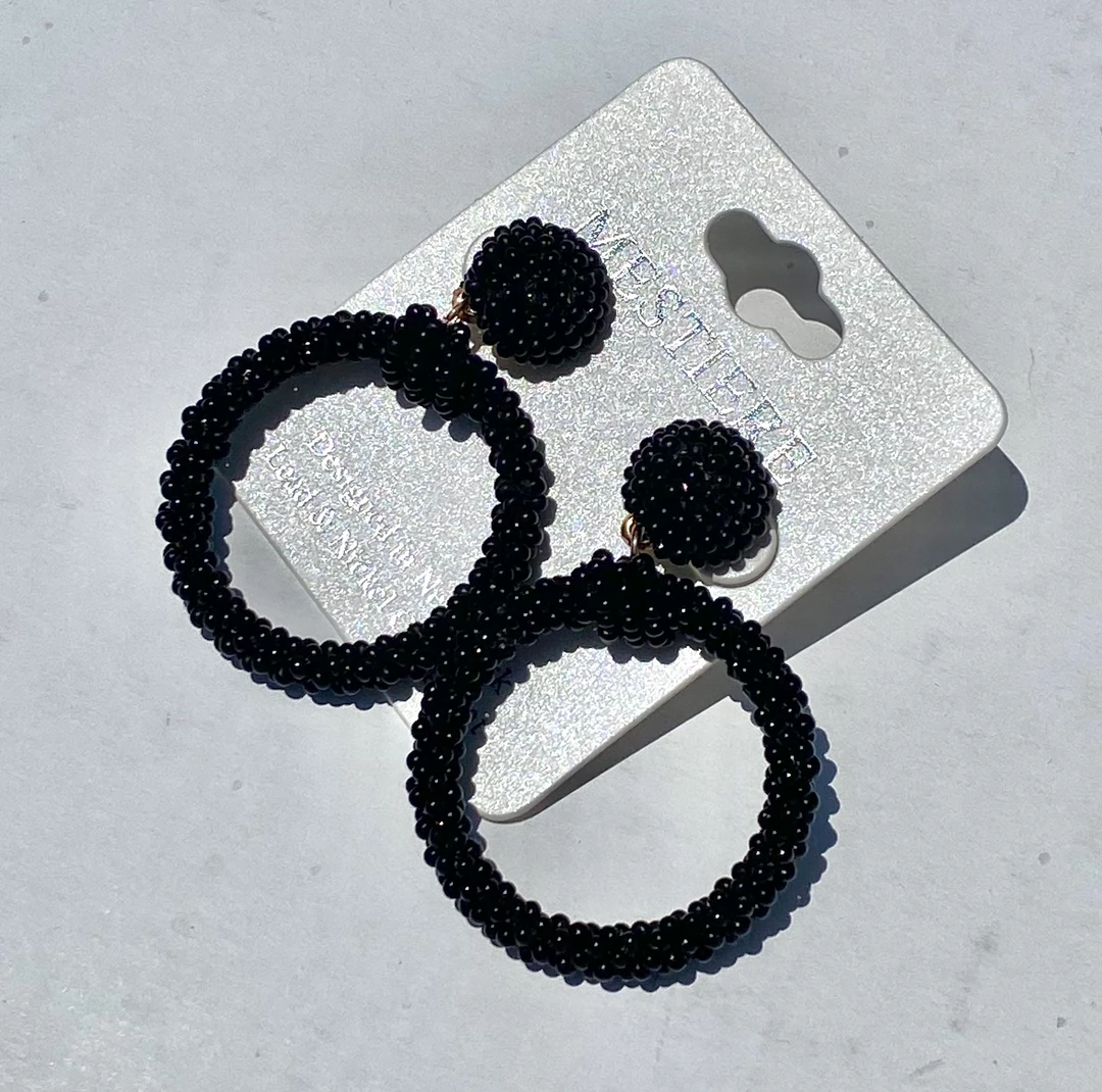 - Elevate your style with these TRENDY Wholesale Beaded Round Statement Earrings. Perfect for any occasion, these earrings add a touch of elegance and sophistication to your look.