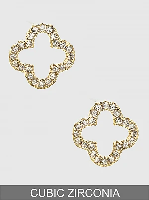 - Elevate your style with these TRENDY Wholesale Cubic Zirconia Quatrefoil Stud Earrings. Featuring a delicate quatrefoil design, these earrings are perfect for adding a touch of elegance to any outfit.
