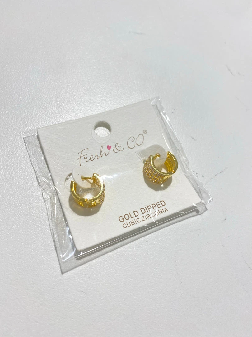 - Elevate your style with these TRENDY Wholesale CZ Banded Huggie Earrings. Featuring sparkling cubic zirconia stones, these earrings are perfect for adding a touch of elegance to any outfit.