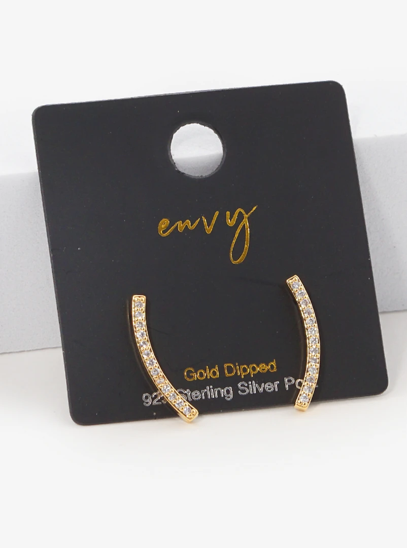 - Elevate your style with these TRENDY Gold Dipped Bar Stud Earrings. Featuring a sleek, minimalist design, these earrings are perfect for adding a touch of sophistication to any outfit.