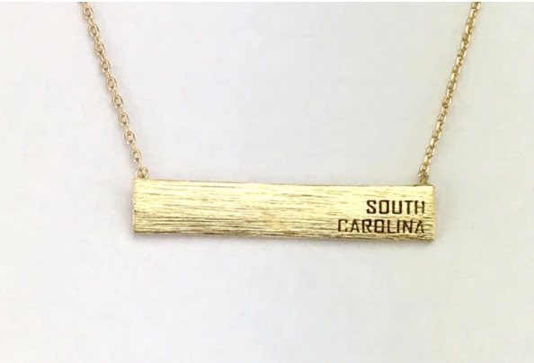 - textured bar necklace with engraved ‘georgia’ or ‘south carolina’