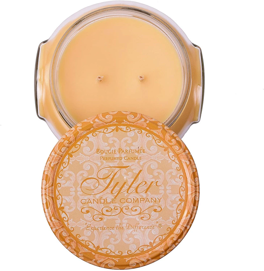 - Experience the luxurious fragrance of the Tyler Candle Company 22oz Scented Candle, designed to elevate your home ambiance with its premium, long-lasting scent.