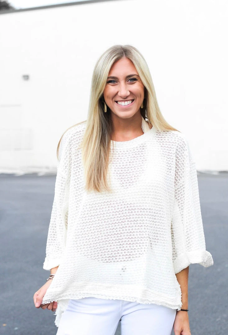 The versatility of this amazingly cute top cannot be overstated. Whether you want to wear it over a lace bralette or over an essential t-shirt, it always looks fabulous. The slightly sheer material is a unique element that makes it even more fun to wear, while the sleeves are oversized and can be rolled up. It’s lightweight enough to even be worn as a bathing suit cover up at the beach or pool. How you wear it is totally up to you!