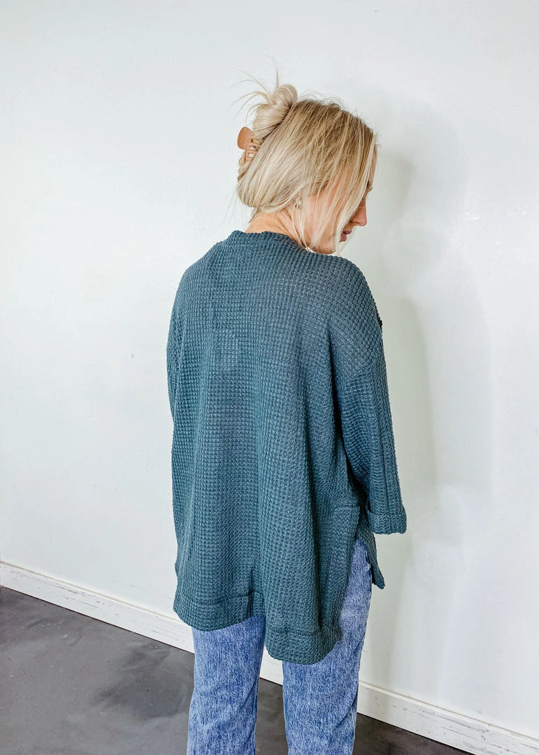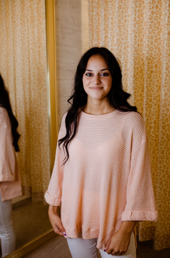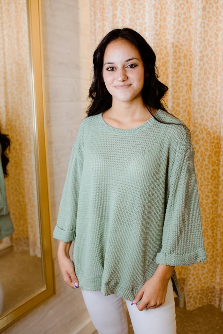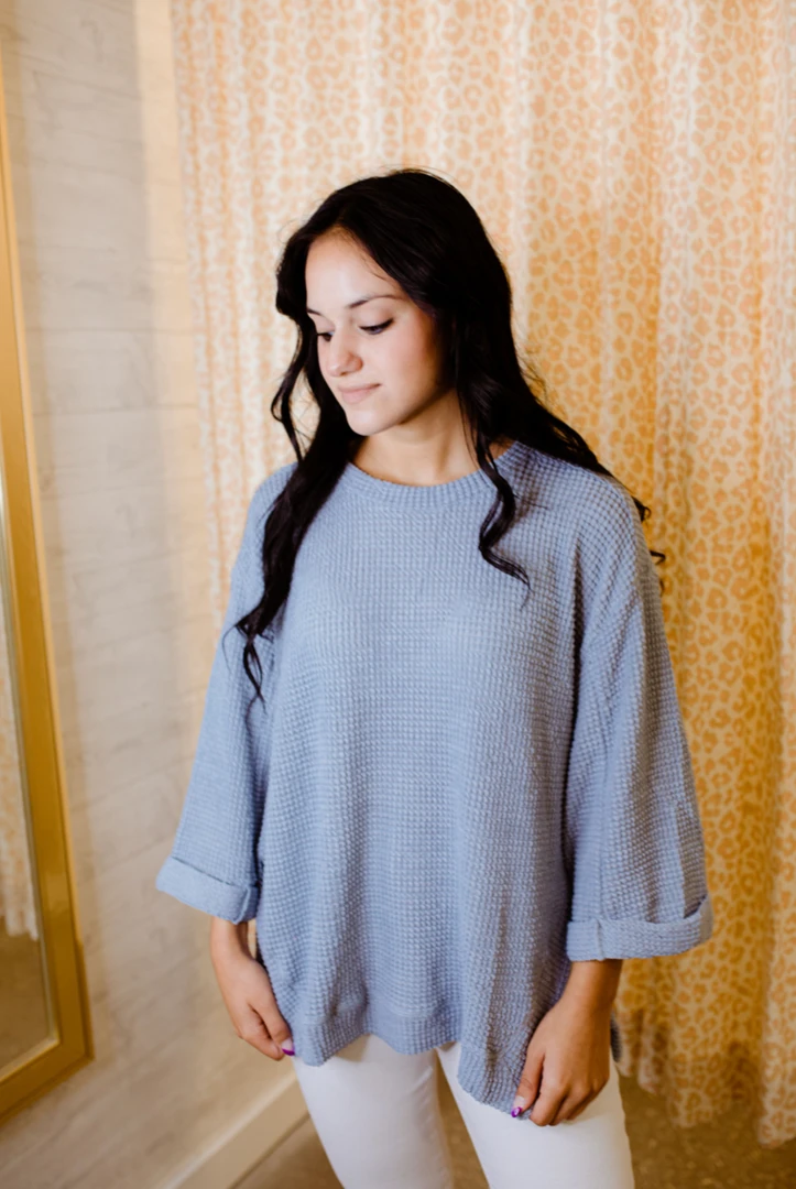 - Designed for plus-size women, this waffle knit top offers a relaxed fit with an oversized silhouette, ensuring both style and comfort.