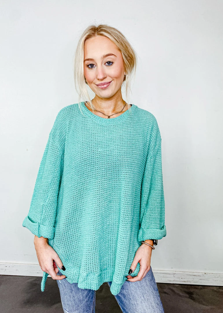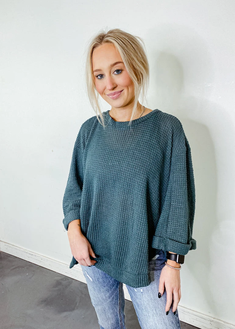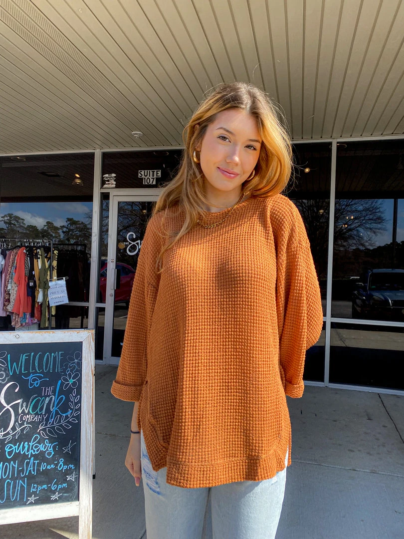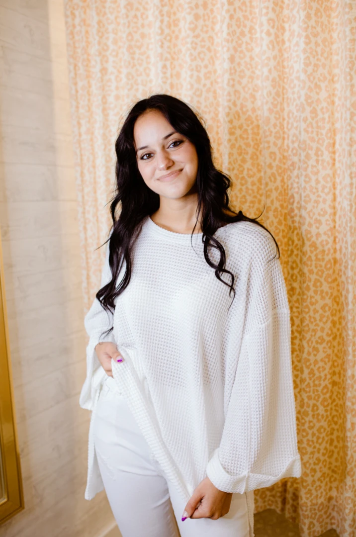 Umgee Sophie Oversized Waffle Knit Top – Plus Size Long Sleeve Tops for Women