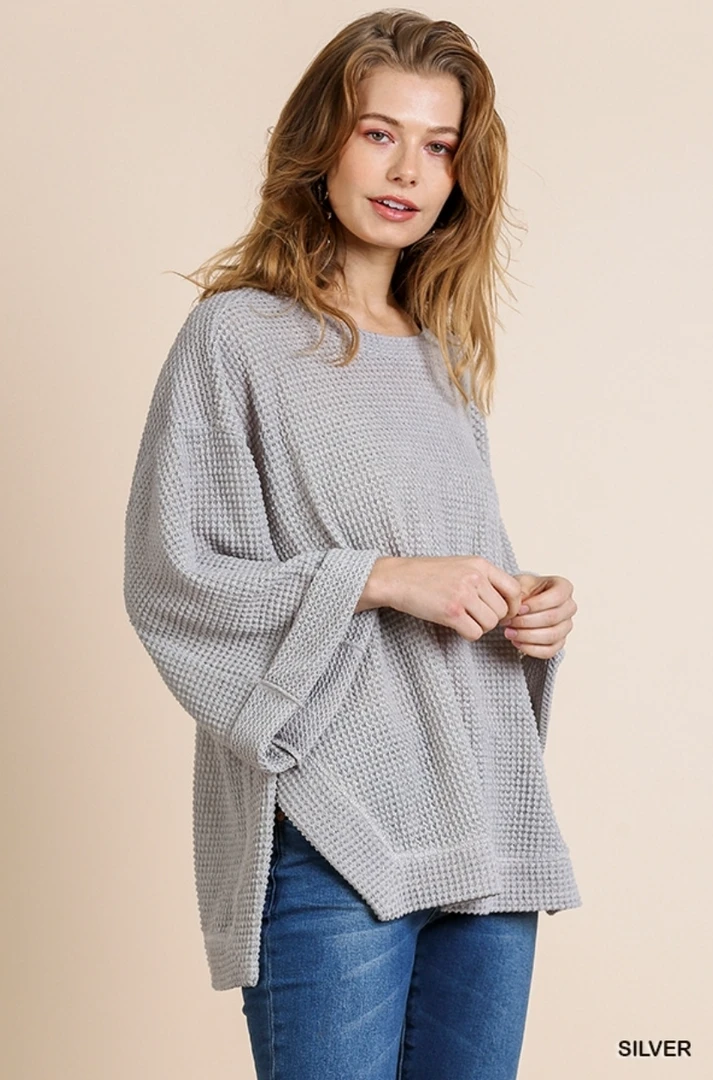 - Experience ultimate comfort with the Umgee Sophie Oversized Waffle Knit Top. Made from soft, breathable fabric, this long sleeve top is perfect for all-day wear.
