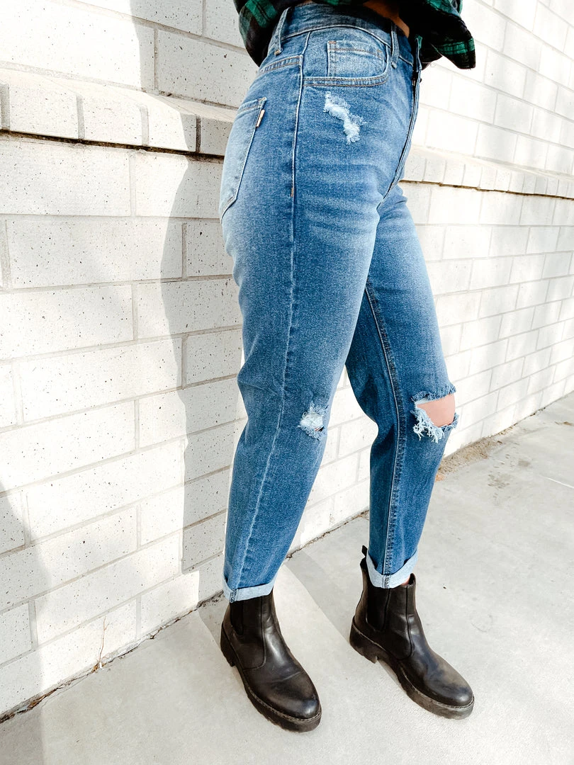 Vibrant Bottoms Jackie Distressed Mom Jeans – Plus Size High-Waisted Denim Pants