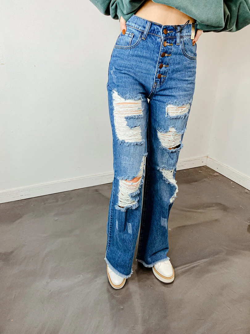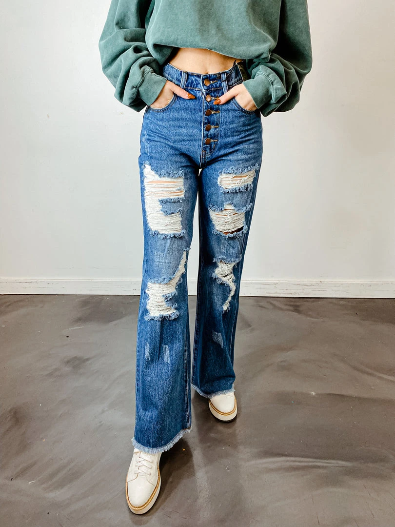 - Enjoy fast and reliable shipping with secure payment options. Our customer-friendly return policy ensures your satisfaction. Shop now and embrace the confidence that comes with wearing our Vibrant Christian Distressed Wide Leg Jeans!