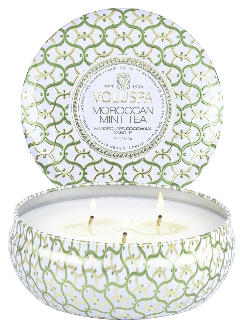 - Made with a blend of natural waxes and high-quality fragrances, the Voluspa 3 Wick Tin Candle ensures a consistent and even burn for hours of enjoyment.