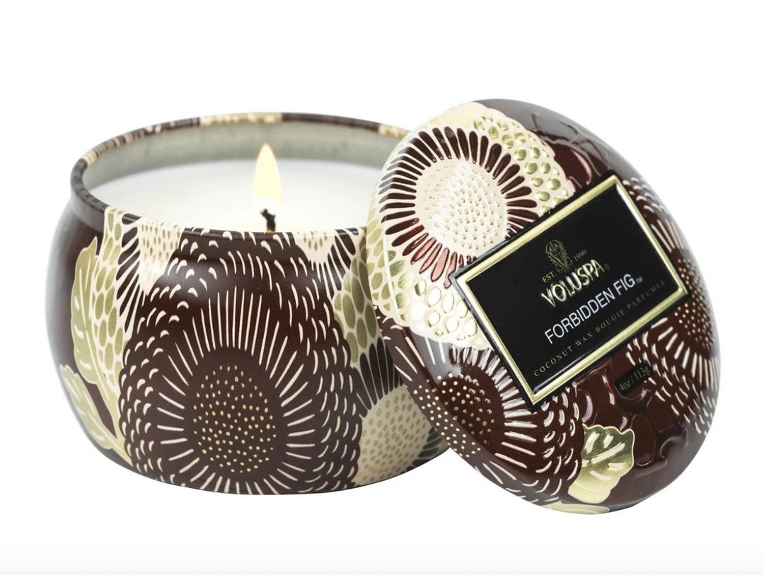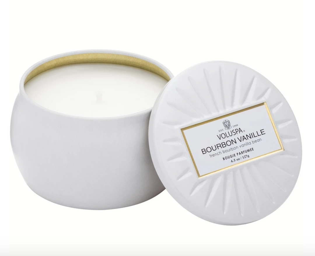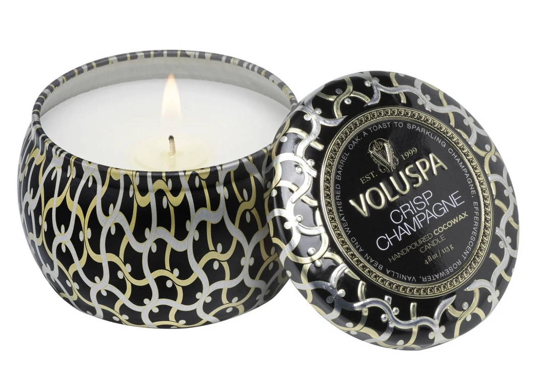 - Enhance your home ambiance with the Voluspa Mini Tin Candle, a premium scented candle that offers a long-lasting and luxurious fragrance experience. Perfect for creating a cozy atmosphere or as a thoughtful gift.