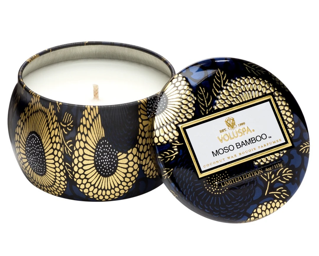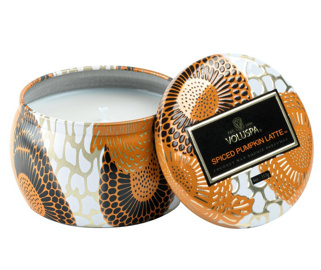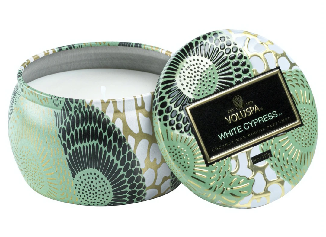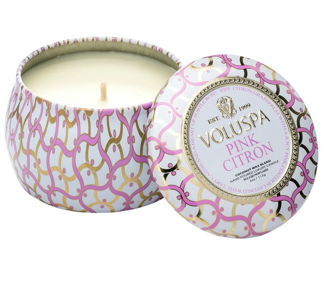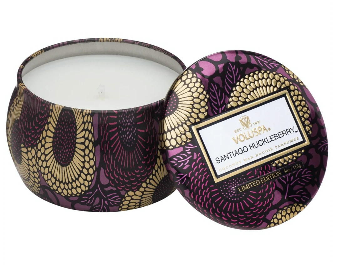 - Available in a variety of captivating fragrances, the Voluspa Petite Tin Candle offers a luxurious scent experience. Each candle is housed in a stylish, reusable tin, making it a beautiful addition to any room.