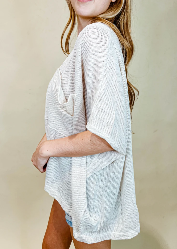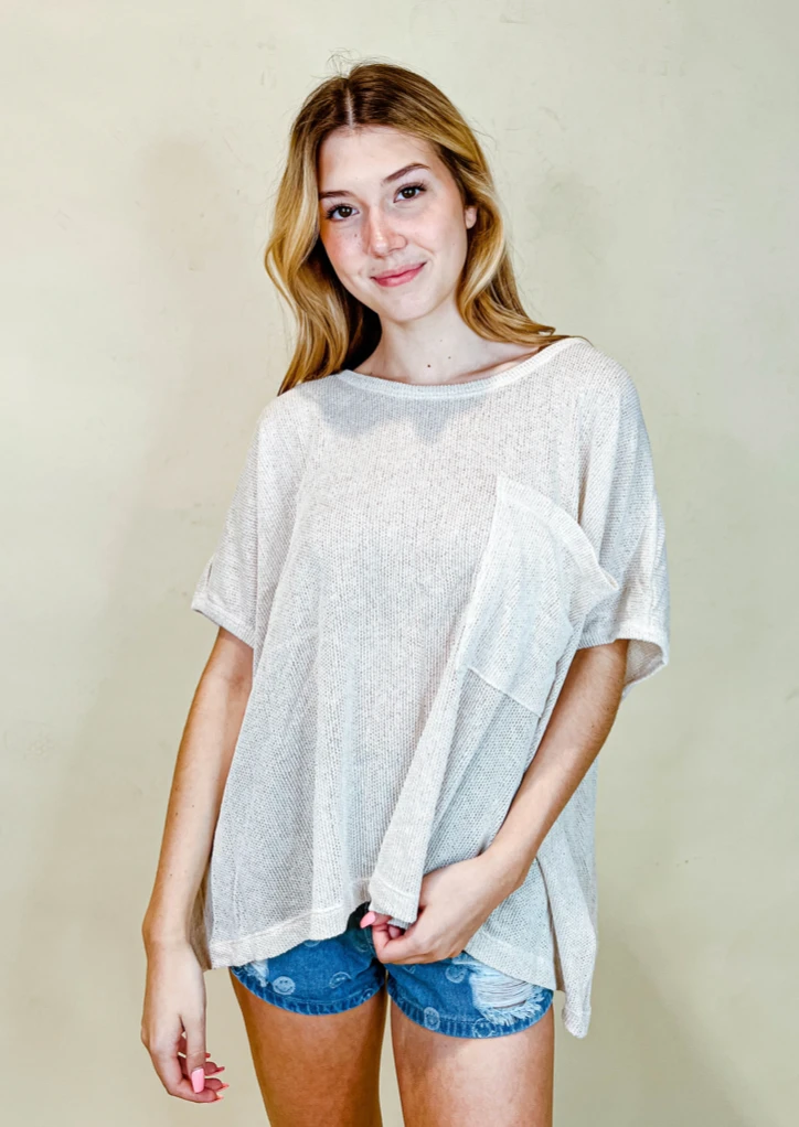 The Havanna Lightweight Knit Top is the perfect summer top! The Havanna top features a boat neckline, short sleeves, a pocket detail on the front, and a relaxed, oversized silhouette. The Havanna top is a super lightweight knit – perfect for the summertime! Easily pair the Havanna top with your favorite denim shorts and sandals.Â